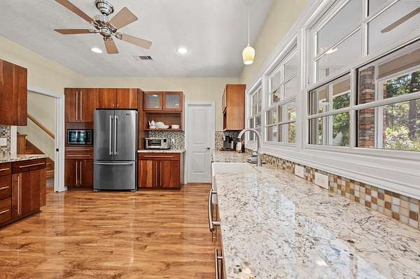 Est $4,224/moJust listed is this one of a kind southern style plantation home situated on 12+ acres. This dream house is calling your name. This custom built home offers a great family area and open floor plan. The oversize kitchen has a snack bar, tons of space and a beautiful walk in pantry. There is a private office on the main floor and the primary bedroom is located on the lower level with a nice ensuite and closet. Upstairs are two separate bedrooms and an additional space for another office or sewing room. The screened in porch overlooks the property and gardens. There are walking paths and bridged walkways that lead to the pond. A wonderful place for your weekend, your family or your retirement. Call today and lets go take a look.