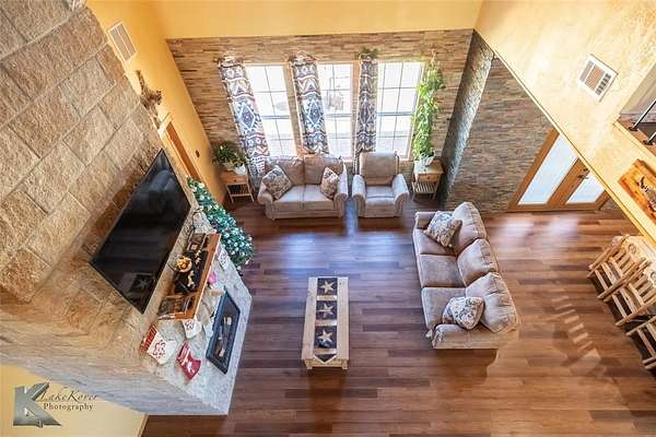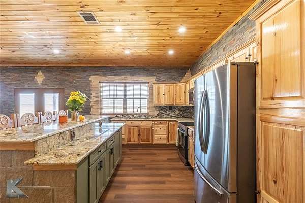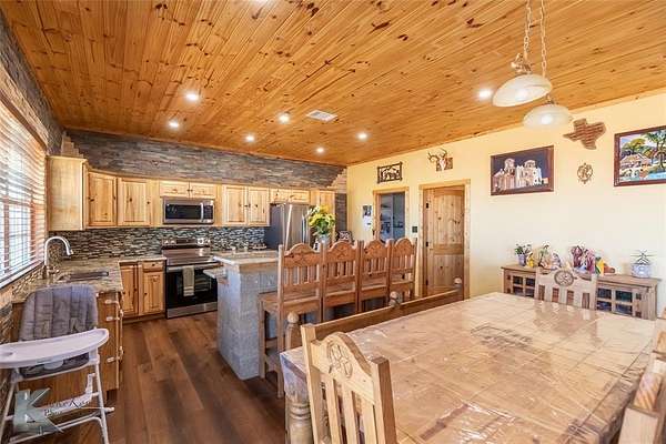 Built in 2021, this two-story ranch-style home offers 2,371 sq ft fully fenced acres. With multiple water sources, animal infrastructure, and refined interior finishes, this property delivers space, privacy, and long-term versatility. Set well back from the road and accessed by a long private driveway, 673 CR 612 in Trent, Texas offers a peaceful arrival and a strong sense of privacy. The home is positioned to take full advantage of the surrounding acreage, creating a quiet country setting with expansive views and usable land in every direction. The residence features four bedrooms and three bathrooms with a thoughtful layout designed for both everyday living and entertaining. Interior highlights include wood vaulted ceilings, a grand fireplace, and open living areas filled with natural light. The gourmet kitchen is appointed with stainless steel appliances and ample workspace, serving as a functional and visual centerpiece of the home. Designer bathrooms reflect attention to detail and comfort throughout the living spaces. Central heat and air provide year-round climate control. The land itself offers exceptional utility and flexibility. The perimeter-fenced property provides ample room for livestock, agricultural use, or future expansion. The property is farm animals ready. Five water wells, water meters, and a windmill water system offer extensive water infrastructure rarely found together, supporting both residential and agricultural needs. A dedicated smoke house on site adds character and practical use for cooking and entertaining his ranch offers freedom of use and long-term potential. Whether utilized as a working ranch, small farm, or private country retreat, the property provides significant space and modern construction in a quiet rural setting. The long driveway, expansive acreage, and property with substantial presence and lasting value. Schedule your appointment today!