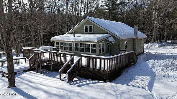 An opportunity like this doesn't come along very often! A long driveway leads you to this completely private 3 BR/2bath ranch home on 21+ acres in rural Damascus, PA. Home was completely updated in 2022. With all that land, you can hike, hunt, cut trails for 4-wheeling, and there are mature trees for timbering, should you wish to make some renewable money off your property. Beaverdam Creek runs through the land, so it's a nature-lover's dream, attracting all kinds of wildlife. Inside, find a pleasantly renovated home with spacious, updated rooms and new windows. The back sunroom faces the spacious multi-level deck and has a cozy woodstove for added warmth. It increases your living area in all seasons! Inside find the large living room. One bedroom is off there, then a wide hallway opens to the eat-in kitchen, drenched with light. Two more bedrooms and a full bath are just beyond that. You'll like the expansive bedrooms, all with closets and large windows for lots of natural light. An unfinished basement houses the furnace and systems, plus a full bathroom down there. Bonus: home comes furnished, so just move in and start living! There are 3 outbuildings for storage and 'toys''/outdoor equipment. NO HOA-- LOW taxes for this much house and land! Just 10 minutes to Callicoon, NY for Delaware River fun; shopping, restaurants, Farmers Market, movie theater, bowling alley, galleries. 25 minutes to Honesdale, PA for larger shops and big-box franchise stores. Centrally-located; just 5 minutes to the Delaware River access. 2+ hrs from NYC; just 3 hrs from Philly.