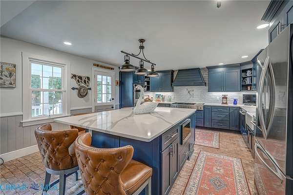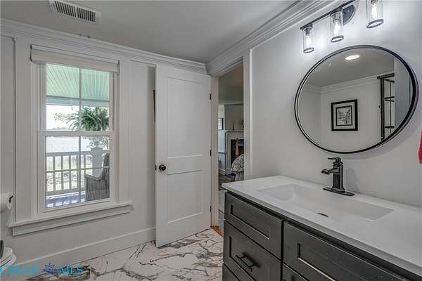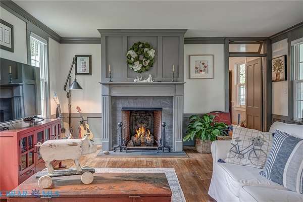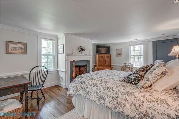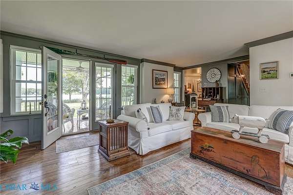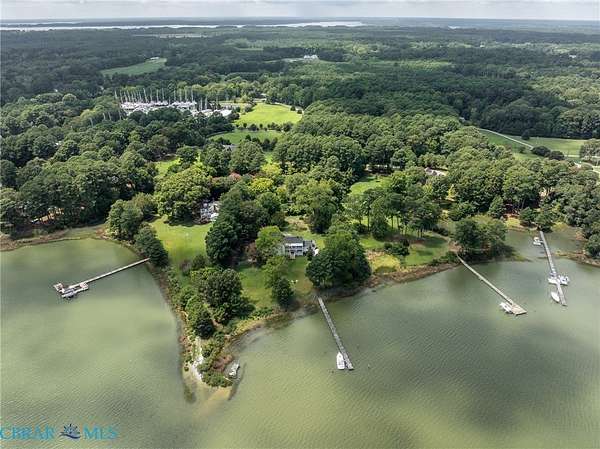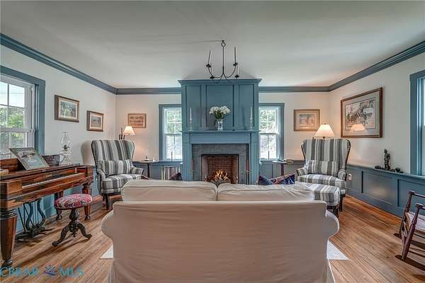 Showings begin April 10th. Built in 1875 and reimagined in 2023, this extraordinary estate blends timeless history with modern elegance. Once the postmaster's residence, it now presides over 5.02 acres along the coveted East River, with 184+feet of shoreline, deep-water draft, and private pier. Raised 40 inches on a new foundation, the home was enhanced with two covered waterside porches, perfect for savoring panoramic river views. A welcoming entry porch ushers guests into the home with a refined sitting room,one of six spaces graced with gas fireplaces. Detailed wainscoting and moldings highlight the craftsmanship of a complete renovation that included all-new systems, porcelain-tiled baths, and custom finishes. At the heart of the home, the chef's kitchen impresses with custom cabinetry, expansive quartz countertops, and a grand island with seating for five. Premium appliances include a 48-inch Bertazzoni six-burner cooktop w/griddle, KitchenAid double ovens, two Fisher Paykel dishwashers, and authentic brick flooring. A dining area for eight plus the eat-in island make this an ideal space for entertaining. Completing the main level are two sitting rooms - one opening to the covered porch with sweeping river vistas - a pocket powder room, and a flex room that can serve as a study or bedroom. Upstairs, there are two guest bedrooms and a stylish guest bath. The Primary suite and one of the guest rooms enjoy direct access to the second-floor porch. A rare blend of heritage, craftsmanship, and waterfront luxury, this property is more than a home-it is an enduring lifestyle.