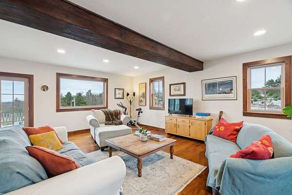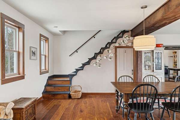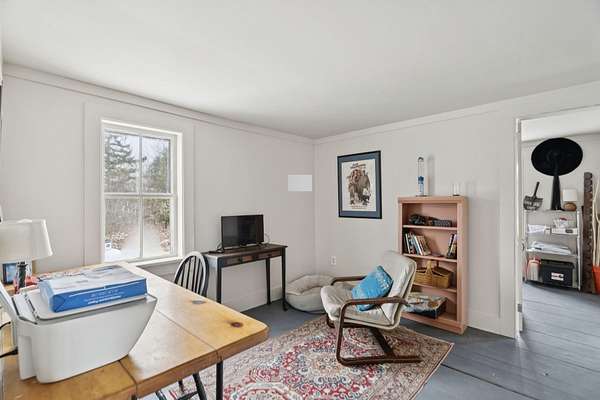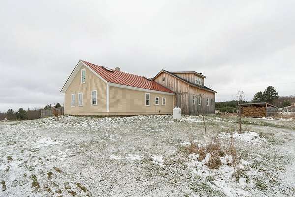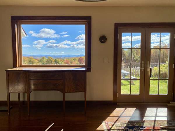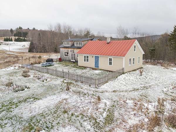 Experience the best of Vermont living on 10+ picturesque acres with sweeping panoramic views in every direction. This one-of-a-kind setting offers beauty, privacy, and a true country lifestyle, complete with breathtaking sunrises over the White Mountains of New Hampshire and stunning sunsets fading behind the Green Mountains. The property is a homesteader's dream, featuring established orchards with a variety of apples, both young and heritage, abundant wild blueberries and strawberries, and an impressive private road lined with young American Chestnut trees. Tucked into this peaceful landscape sits a charming post-and-beam Cape, rich in character, which was thoughtfully expanded with a new addition in 2022. Natural woodwork, exposed beams, and farmhouse-style details create a warm and timeless feel throughout. Many original floors remain, adding to the authenticity and charm, while tasteful modern updates blend seamlessly with the home's rustic features. The east-facing living and dining room capture morning light and long-range mountain views—an ideal space for gathering and appreciating the scenery year-round. The open kitchen includes a farmhouse sink, center island, and stainless steel appliances, balancing practicality with style. With three bedrooms and two baths, there’s space to spread out, host guests, or work from home with inspiring views as your backdrop. This property brings together land, character, and self-sustaining features in a spectacular location.