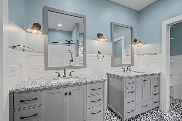The primary suite is privately situated and includes an oversized cedar walk-in closet and a well-appointed bath with double vanity, walk -in shower and a separate water closet. Two additional bedrooms and a full bath are located on the opposite side of the home, completing the main level.