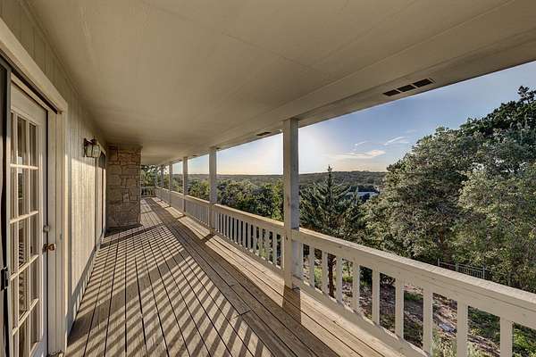 This secluded Hill Country home is located in the highly desirable Tierra Linda Ranch. This captivating 3-bedroom, 3.5 bathroom home offers the perfect blend of comfort and nature. Spanning 3693 SF, residence boasts a spacious and open layout that seamlessly connects indoor and outdoor living. With its elevated position, the home provides a stunning view of the rolling hills and lush landscape. The heart of the home is the grand living area featuring high ceilings, abundant natural light, and a cozy fireplace, creating welcoming space for relaxation and entertainment. Each of the 3 bedrooms is a private retreat, complete with en-suite bathrooms for ultimate convenience and privacy. French doors open from the master onto the back deck. An additional office provides a quiet, productive workspace Each upstairs bedroom has their own set of doors that open onto the upper deck. Outside, the property extends 9.97 acres, providing ample space for outdoor activities and enjoying the natural beauty of the Hill Country. Meander down the back walkway to your own part of White Oak Creek. This HC gem offers it all. AG EXEMPT, HOA Amenities: priv airstrip, horseback riding, fishing and more.