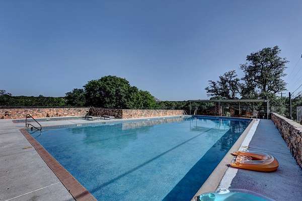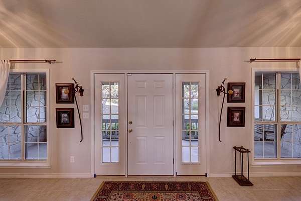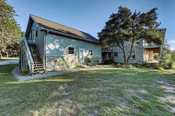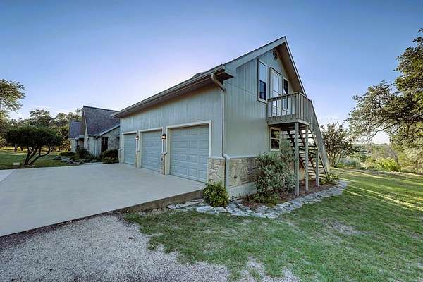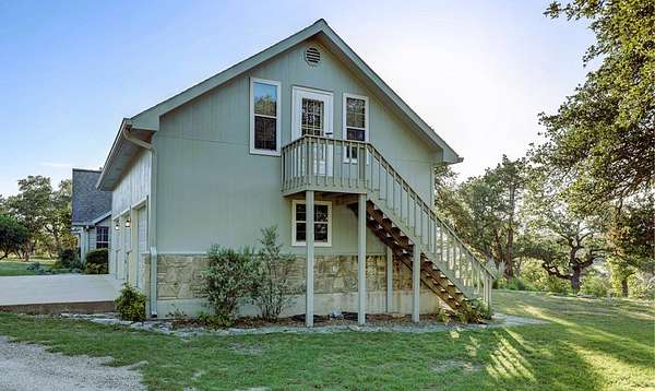 This secluded Hill Country home is located in the highly desirable Tierra Linda Ranch. This captivating 3-bedroom, 3.5 bathroom home offers the perfect blend of comfort and nature. Spanning 3693 SF, residence boasts a spacious and open layout that seamlessly connects indoor and outdoor living. With its elevated position, the home provides a stunning view of the rolling hills and lush landscape. The heart of the home is the grand living area featuring high ceilings, abundant natural light, and a cozy fireplace, creating welcoming space for relaxation and entertainment. Each of the 3 bedrooms is a private retreat, complete with en-suite bathrooms for ultimate convenience and privacy. French doors open from the master onto the back deck. An additional office provides a quiet, productive workspace Each upstairs bedroom has their own set of doors that open onto the upper deck. Outside, the property extends 9.97 acres, providing ample space for outdoor activities and enjoying the natural beauty of the Hill Country. Meander down the back walkway to your own part of White Oak Creek. This HC gem offers it all. AG EXEMPT, HOA Amenities: priv airstrip, horseback riding, fishing and more.