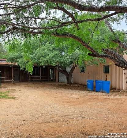 2 ACRES OUTSIDE THE CITY LIMITS IN BEXAR COUNTY OFFERS: NO RESTRICTIONS. THIS PROPERTY IS FENCED AND HAS A NICE PIPE GATE ENTRANCE. COMMERCIAL OR RESIDENTIAL OR BOTH. THERE IS A 50 AM RV HOOKUP WITH THE SEPTIC AND WATER ALREADY IN PLACE WAITING FOR YOUR RV. THERE IS NO FLOOD PLAIN THAT TOUCHES THIS PROPERTY. THE SHOP/WORK/STORAGE AREA IS ALMOST 3000 SQUARE FOOT WITH SEVERAL AREAS TO WORK ALL WITH CONCRETE SLAB FLOOR. 30 AM SERVICE IN SPECIFIED AREA READY FOR YOUR WELDER. ONE OVERHEAD DOOR IN FRONT, ONE SIDE WALK-THRU DOOR AND DOUBLE WALK IN DOORS IN BACK. SOME METAL STORAGE RACKS ARE GOING TO STAY. LARGE CRAFTSMAN AIR COMPRESSOR IS STAYING. THERE IS A RESTROOM IN THE SHOP BUT ITS OPERATION STATUS IS UNKNOWN. ATTACHED TO THE SHOP THERE IS APPROXIMATELY 600 SQUARE FEET OF LIVING SPACE THAT NEEDS TO BE REVIVED. NICE WOOD BURNING STOVE SURROUNDED BY ROCK STONEWORK IN THE LIVING AREA, A KITCHEN AREA AND BEDROOM/OFFICE WITH A FULL BATHROOM AND CLAW FOOT TUB WILL STAY. THIS PROPERTY IS VERY CLOSE TO 1604 AND HWY 87. THERE IS ALOT OF GROWTH HAPPENING IN AND AROUND THIS AREA. THE POSIBILITIES ARE ENDLESS!! PROPERTY IS BEING SOLD AS IS, CASH ONLY.! DOGS ON PROPERTY, DO NOT ENTER WITHOUT APPOINTMENT WITH SELLERS AGENT.