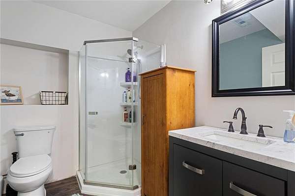 Set on 3.4 acres in a quiet neighborhood, this beautifully updated home offers the perfect rural retreat just 25 minutes from downtown St. Paul. Recent improvements include a new front door and landing, new flooring throughout, and fresh interior paint. The kitchen features a newly installed microwave, adding modern convenience. The finished lower level provides additional living space, including a newly added den—ideal for a home office or flex room—along with an updated 3/4 bath. Upstairs, the full bath showcases a new vanity. Major updates include a new water softener and a new septic system (2023). The partially wooded lot offers privacy, space, wildlife, and a peaceful setting to enjoy year-round.