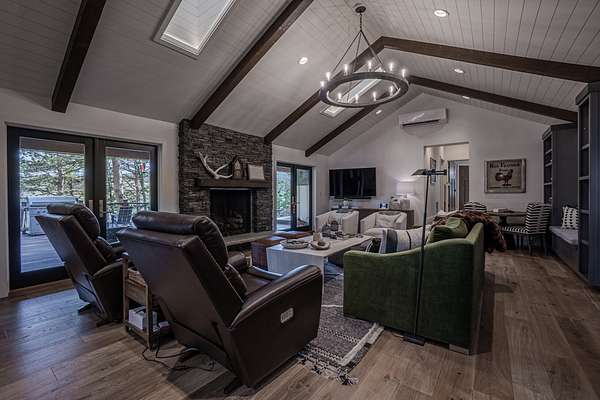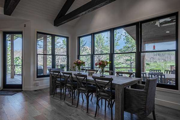 Multiple covered and heated outdoor living areas seamlessly blend indoor and outdoor living, offering breathtaking views of Deadman’s Peak. Steel shutter windows provide enhanced protection. A detached, elevated spa room includes a custom sauna and a 10-person hot tub for ultimate relaxation. The fully fenced property also features an attached garage with a finished bonus space (ideal for a gym, game room, or bunk area) and a separate detached garage/art studio. The ranch is offered fully furnished and turnkey, including equipment and recreational gear, for immediate enjoyment.