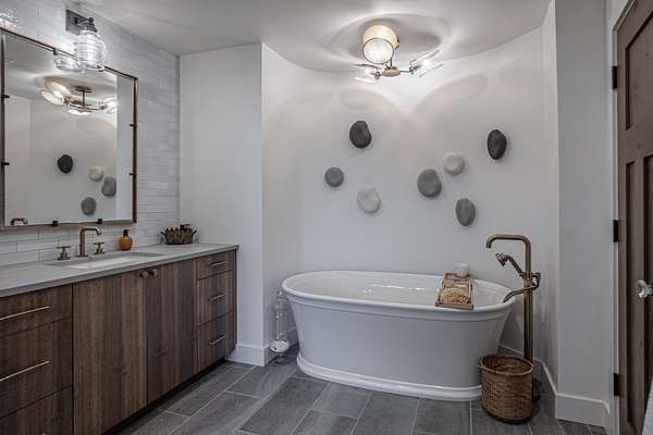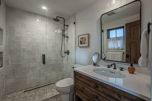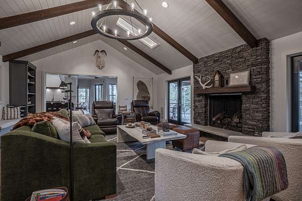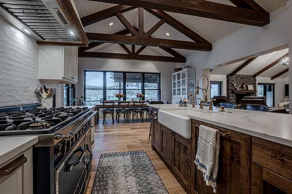 The custom 4,167sf, 4-bedroom, 4.5-bathroom farmhouse exemplifies timeless mountain design with high-end craftsmanship. Nestled into the natural granite and moss rock, the home showcases rustic elegance with features like: