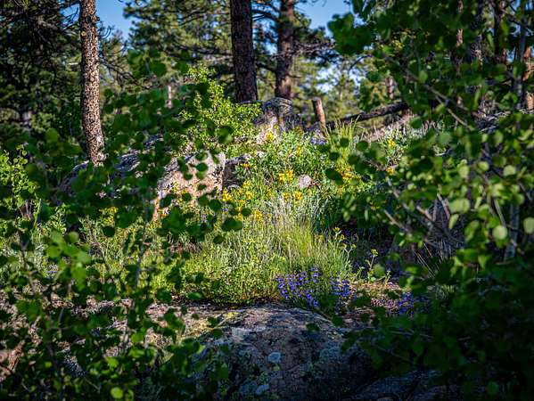 The ranch boasts a rich and varied landscape, largely sub-irrigated by Elkhorn Creek, which waters fertile meadows, vibrant wildflowers, and healthy willows. Massive granite outcroppings rise dramatically. Mature groves of aspen, spruce, pine, and willow create a true alpine feel, with a carefully manicured natural landscape that enhances both visual appeal and wildlife habitat. This unique combination of water, forest, and rugged rock forms a truly inspiring mountain setting.