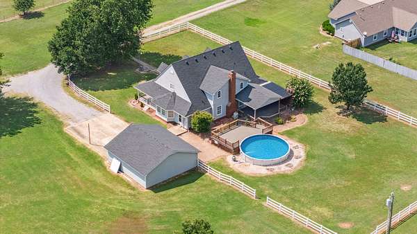 Country Home For Sale in Mayes County OklahomaReady to move to the country? This 6.5-acre property with a custom one-owner country home is now for sale in Salina, OK! Along with the home, you'll find a 2-car detached garage and a large 40x60 shop.This home features 3 bedrooms, 2.5 baths, plus a flex room that could serve as a 4th bedroom, hobby space, or workout area. You'll get the best of both worlds here -- a peaceful rural location, but just minutes from town. As you arrive, the charming front porch welcomes you, complete with your very own porch swing. Inside, the large open living area offers a cozy gas fireplace, lots of natural light from the many windows, and beautiful hardwood floors. Just off the living area, behind sliding barn doors, is a versatile space that works perfectly as an office or even a formal dining room. The kitchen is spacious with plenty of cabinets, granite countertops, and all appliances included -- even the refrigerator. There's also a large eat-in area for casual meals.Downstairs, the master suite features a large bedroom, his-and-her walk-in closets, and a private bath with a soaking tub and separate shower. You'll also find a half bath just off the laundry room for added convenience. Upstairs includes two additional bedrooms that share a hall bath, plus the flex room/4th bedroom.Stepping outside, you'll love the newly built patio area with an outdoor kitchen and large TV -- perfect for entertaining family and friends. The above-ground pool, complete with a new liner, will be a favorite spot during the summer months. A few steps away, the 2-car detached garage offers extra work space and a storage closet for all your holiday decor. The massive 40x60 shop comes with concrete flooring, electricity, a "man cave" area with an OU wall, and overhead drive-through doors.The property itself offers plenty to enjoy -- 6.5 acres with wildlife, fruit trees, and a fenced garden or dog pen. It's a great location with friendly neighbors and only a few miles from town. You're just 15 miles to Highway 412 for an easy commute to Tulsa or Northwest Arkansas.Lake Hudson, OklahomaLiving in Salina means you're right next to beautiful Lake Hudson, one of Oklahoma's best-kept secrets for fishing, boating, and lakeside fun. The area is known for its friendly small-town feel, community events, and outdoor recreation. Whether you're launching your boat for a weekend on the water, enjoying the local shops and restaurants, or simply taking in the lake views, you'll love calling this area home.