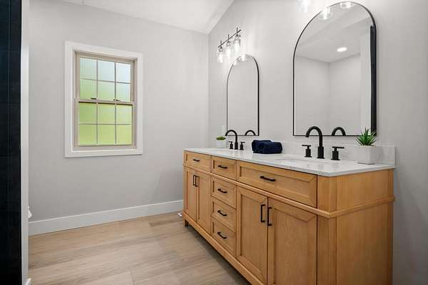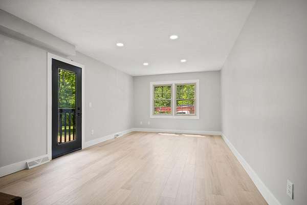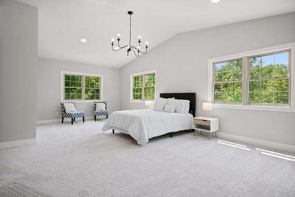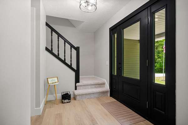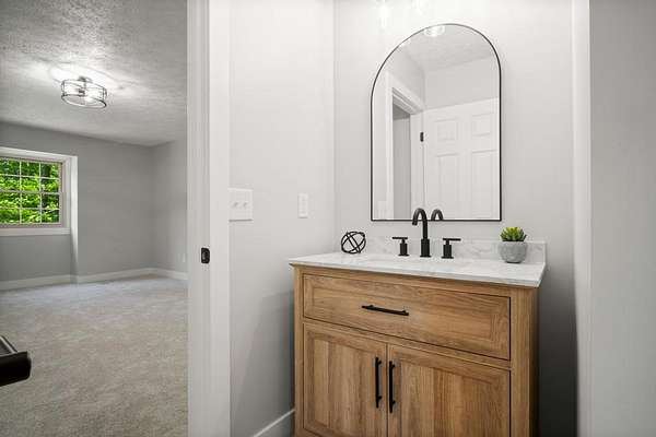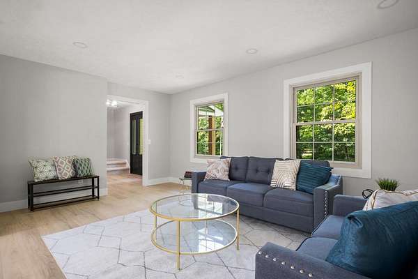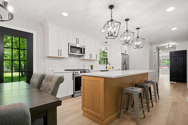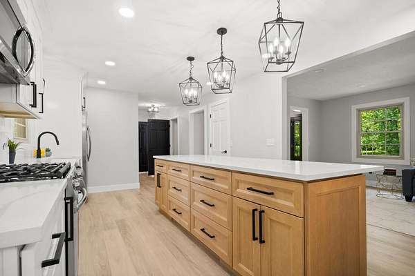 If you've been dreaming of peace and privacy without sacrificing convenience, this beautifully remodeled home is your perfect escape. Tucked a quarter-mile off the road on 5 scenic acres with a pond, this property offers the tranquility of country living while keeping you close to all local amenities, notably less than 10 minutes to Medina Square. Every inch of this home has been thoughtfully updated with today's modern finishes. The exterior boasts a brand-new roof, front walkway, stylish front door & new garage door & all new siding. Step inside & be greeted by a welcoming foyer that opens to a bright living room & stunning kitchen. The kitchen is an entertainer's dream, featuring brand-new stainless steel appliances, quartz countertops, a spacious 9-foot island, modern shaker cabinets, & a designer tile backsplash, & the dinette has access to the back patio. Just off the kitchen, you'll find a convenient half bath & a cozy family room with access to your private backyard & peaceful wooded views. Upstairs, two generously sized bedrooms share a beautifully updated full bath with new vanities, fixtures, & a stylish tile shower/tub surround. The third bedroom includes its own ensuite with a walk in tile shower & contemporary finishes. The luxurious master suite is a true retreat, complete with vaulted ceilings, large windows overlooking the property, a massive walk-in closet with custom built-ins, & a spa-like ensuite featuring a double vanity & a stunning walk-in tile shower. Virtually everything in this home is brand new - flooring, carpet, paint, lighting, hardware & fixtures, interior doors, furnace, hot water tank, & electrical panels. The finished basement adds even more flexibility with a spacious rec room, laundry area, & a large workshop/storage room with direct access to the backyard. This property is a rare blend of modern living & natural beauty. Don't miss your chance to own your own private retreat!
