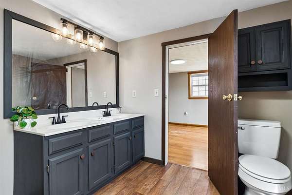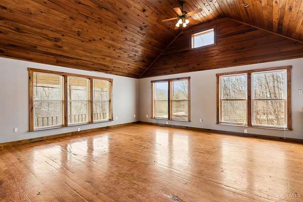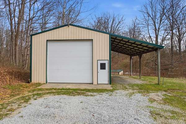 Est $2,045/moLooking for country living? This beautifully renovated 3 bed, 2 bath home sits on a wooded lot and blends rustic charm with modern updates. Features include an eat-in kitchen, spacious great room with cathedral wood ceiling, and oak plank hardwood floors. The primary suite offers a private ensuite bath. Enjoy the covered porch overlooking peaceful surroundings. A partial unfinished basement provides storage and garage space. Outside, you'll find a 24x32 garage/shop with half bath, lean-to, and 14-ft door perfect for hobbies or equipment. Bonus: second potential build site with water, electric, and septic already in place! *Some images have been virtually staged