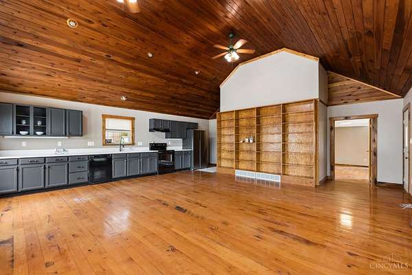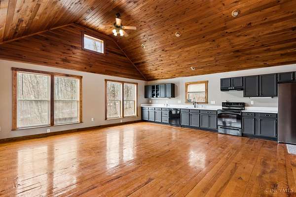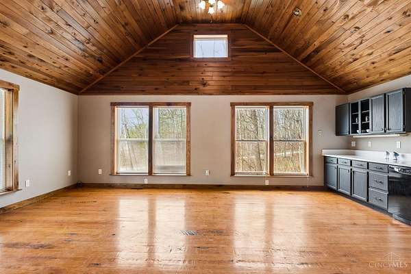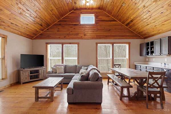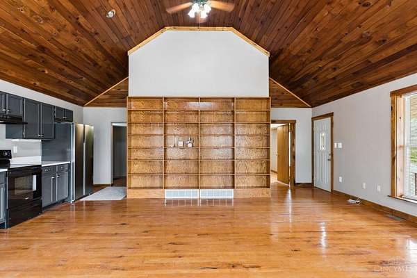 - 9 Ft + Ceiling, Cathedral Ceiling, Natural Woodwork, Vaulted Ceiling