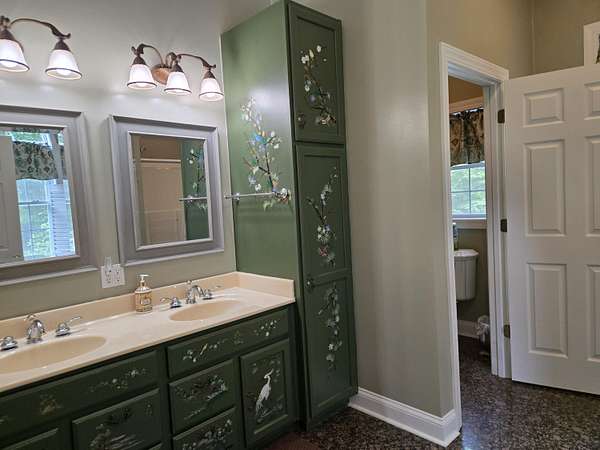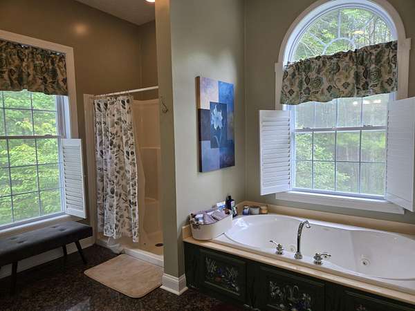 If you are looking for a beautiful, tranquil and unique property, then look no further than this stunning home on 13 acres with 2 ponds! Large open rooms with 10' ceilings on the main level include the primary bedroom, parlor / living room, dining room and a chef's kitchen with multiple ovens, 6 burner gas stove and ice machine. Seven bedrooms on 3 levels with six of them having en-suite bathrooms. Home is perfect for relaxing or entertaining with 5 gas fireplaces and several outdoor areas to include screened or covered porches! Partially cleared with garden space and partially wooded for privacy. There is an additional building with a concrete floor, roll up door, 220 electric and a bathroom with a shower. Make this yours!