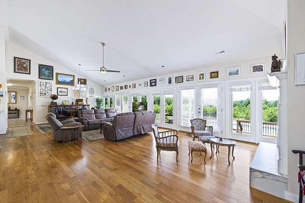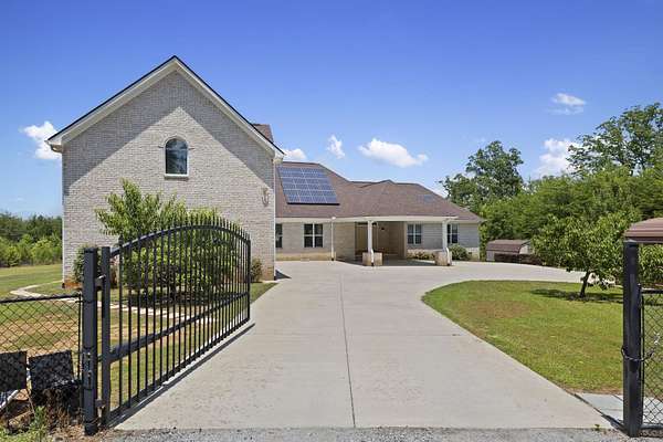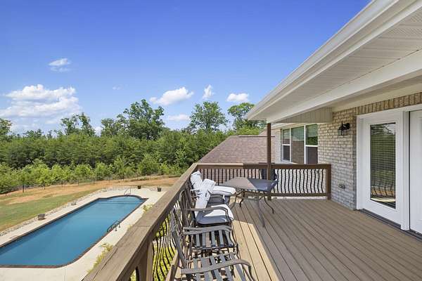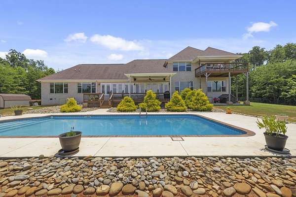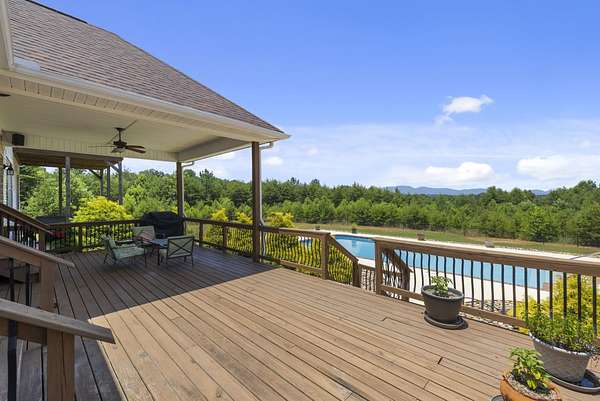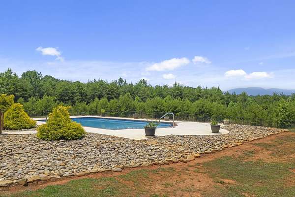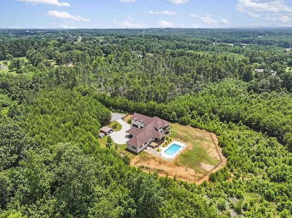 Unforgettable Blue Ridge Mountain Views | 17.34 Private Acres | Custom-Built, One-Owner All-Brick Home | 5,572 Total Heated SF | Dual Living Quarters. Nestled on 17.34 secluded acres with breathtaking views of the Blue Ridge Mountains, this custom-built, one-owner, all-brick exterior home offers the best of privacy and accessibility featuring road frontage on both Hwy 357 and Skinner Road. Travel down the long, wooded private drive and be welcomed by a striking mountain panorama, gated entry, and a grand porte-cochère for easy guest drop-off right at the double front doors. Step into the Main Residence offering 3,401 heated square feet, bathed in natural light with an open, split-bedroom floor plan designed to capture the mountain views from nearly every room. The living room, dining area, and kitchen flow seamlessly beneath soaring cathedral ceilings and open to a massive back deck partially covered overlooking an in-ground swimming pool and stunning sunsets over the mountains. The kitchen is a chef’s dream with ceramic tile flooring, rich wood cabinetry with soft-close doors and drawers, granite countertops, center island, breakfast bar, and full appliance package including refrigerator. Just off the kitchen, you’ll find a massive laundry room with built-in cabinets, laundry sink, and a huge walk-in pantry perfect for storage and functionality. The living and dining areas feature hardwood floors and a cozy gas log fireplace. The Owner’s Suite is a true retreat with triple windows showcasing the mountain view, trey ceiling, hardwood floors, walk-in closet, and a luxurious ensuite bath with jetted tub, tiled shower with glass door, granite double vanity, and ceramic flooring. A private home office sits just off the suite, perfectly positioned for inspiration with sweeping views. On the opposite side of the home, you’ll find three additional spacious bedrooms two with private or shared baths, and all featuring hardwood floors and ceiling fans. Only one bedroom doesn’t have a mountain view! Main House Total: 4 Bedrooms, 3.5 Baths + Office. Second Living Quarters: Accessible from a private exterior entrance and the attached 3-car garage, the additional 2,171 heated square feet is ideal for multi-generational living, Airbnb, or VRBO. With the same open-concept design, mountain views, and premium finishes, this space feels like a second home. Enjoy a sprawling living area with cathedral ceiling, eat-in kitchen with granite counters and soft-close cabinetry, two large bedrooms with private baths, and even a private deck off one bedroom. A laundry closet with stackable washer/dryer is included. Property Features Include: • Spectacular year-round Blue Ridge Mountain views • In-ground swimming pool • Multiple heat pumps & hot water heaters • Solar panels (owned, not leased) • Spray foam insulation (crawlspace, attic, and select walls for noise reduction) • 20x18 detached 2-car carport • 10x7 metal outbuilding & 16x10 wooden outbuilding with mower ramp • Fruit trees • No HOA or restrictions This is more than a home it’s a private mountain retreat built for entertaining, relaxing, and living your best life. Come tour today and experience the magic for yourself. Homes like this don’t come along often don’t let it get away!