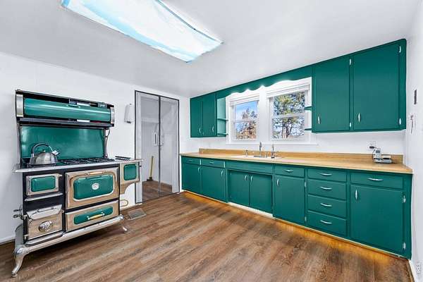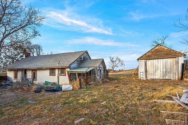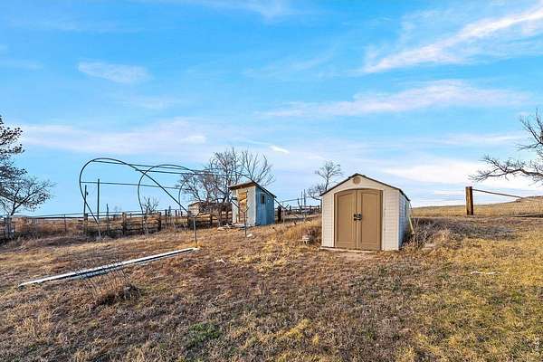 ESCAPE THE NOISE: The Ultimate Modern Farmhouse! Experience true peace and self-sufficiency on this beautifully updated 1916 farmhouse, situated on over 2.5 tranquil acres where the horizon never ends. Located 30 minutes from Pine Bluffs, WY and under an hour from Fort Collins and Cheyenne, this is "Middle of Nowhere" done right-close enough for essentials, but far enough to become invisible. SUSTAINABLE INDEPENDENT LIVING: Enjoy off-grid energy and modern comfort with a fully owned 5.5 kW whole-house solar system (installed 2021, warranty transferable). This is the ultimate private retreat designed for those who value independence and quiet, remote living. INTERIOR MODERN CONFORTS: Inside, the home blends historic charm with high-end utility, featuring durable LVP flooring and a massive 30x12 great room anchored by a cozy wood-burning fireplace. The chef's kitchen is a showstopper, boasting a Heartland retro-style gas stove and commercial-grade Kenmore Elite freezer and refrigeration. The main floor features a primary suite with a freshly remodeled full bath, plus a south-facing 3rd bedroom/study and a sprawling sunroom that floods the home with natural sunlight and warmth. Upstairs delivers a fully remodeled private bedroom and a vintage-inspired bathroom with a classic claw-foot tub. Enjoy energy efficiency and peace of mind with newer double-paned windows and updated whole-house insulation. LAND & OUTBUILDINGS: The 2.47-acre lot is ready for your hobbies, livestock, or side-hustle. It includes a versatile 16'x32' partitioned outbuilding, a fenced pen, and a back pasture. The property is monitored by a hardwired security system, ensuring the area remains secure. TERMS: Property sold As-Is. For those seeking even more elbow room, the adjacent lot with a renovation-ready structure is available for an additional $37k (not sold separately).