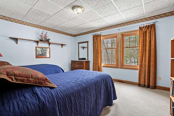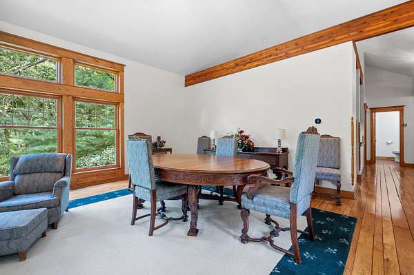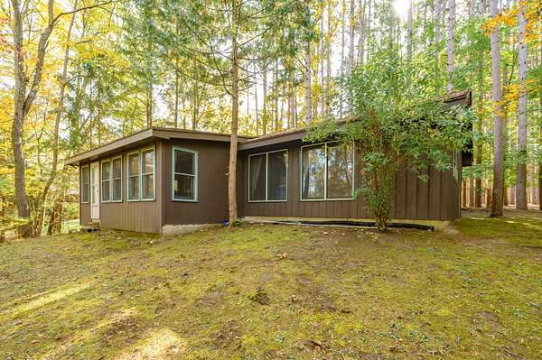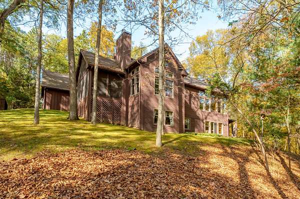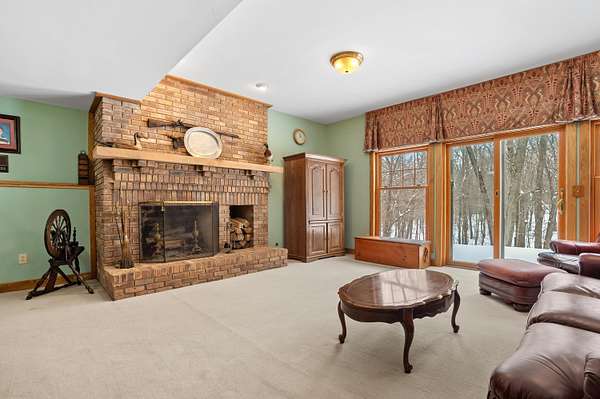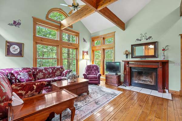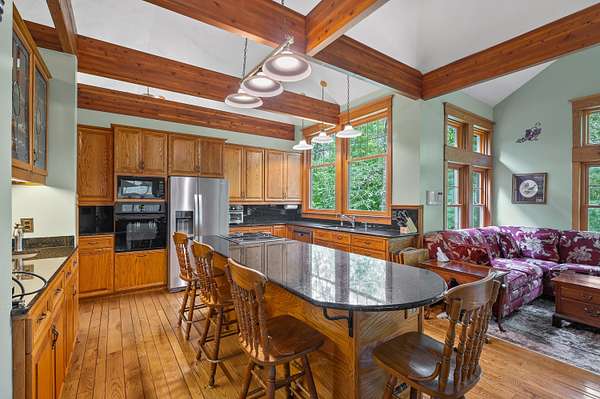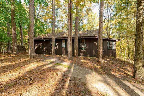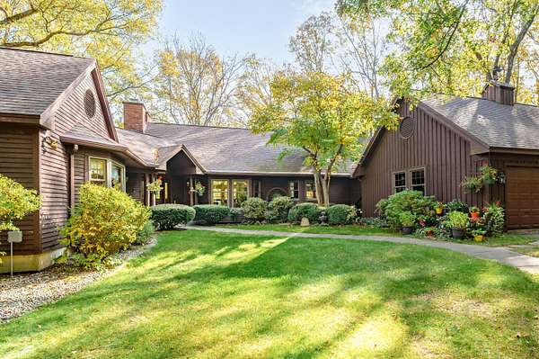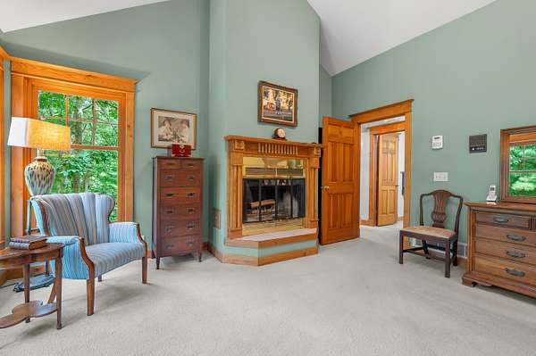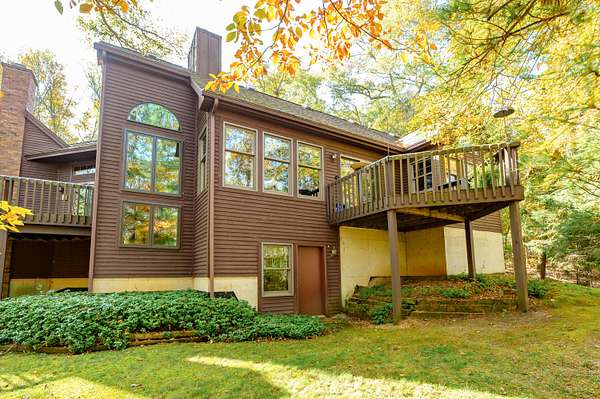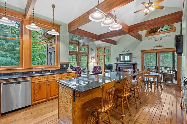A rare opportunity awaits in an irreplaceable setting~ready to be discovered. This custom-built home + separate cabin are nestled on 42+acres, just 5 minutes from Gull Road. This well-loved, original owner home offers 4,400+ sq ft of finished living space with a multitude of windows on all levels, showcasing the surrounding natural beauty. A half-acre level playing field is a short trail walk from the home. Vaulted ceilings, exposed wooden beams, hardwood floors, and four fireplaces create a serene retreat. The main floor features a thoughtfully designed primary suite w/an intimate fireplace, a large jetted tub, and a private deck overlooking the creek.The spacious 2nd bedroom is adjacent to a full bath, just steps from the main foyer.The living area boasts a wall-to-ceiling fireplace, b bookshelves, gorgeous woodwork, and a dining area, offering a spectacular open space for entertaining. The vaulted ceilings and exposed wooden beams flow into the kitchen area, which features granite counters, a large island with stools, a second dining area, a wet bar, and a cozy family room with a fireplace. A spacious screened-in porch is just steps away. The lower level walkout offers a cozy rec room with another fireplace, 2 spacious bedrooms, another full bath, a workout room with a private entrance, and a workshop area. The separate cabin, just a short trail from the main home, offers 2 bedrooms, a full bath, a kitchen, and baseboard heat or a wood-burning stove. The possibilities are endless for a studio, mother-in-law suite, or guest house.