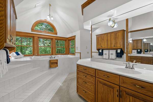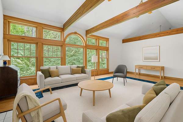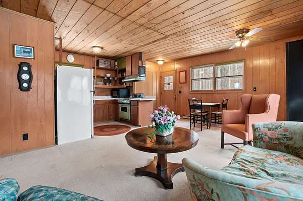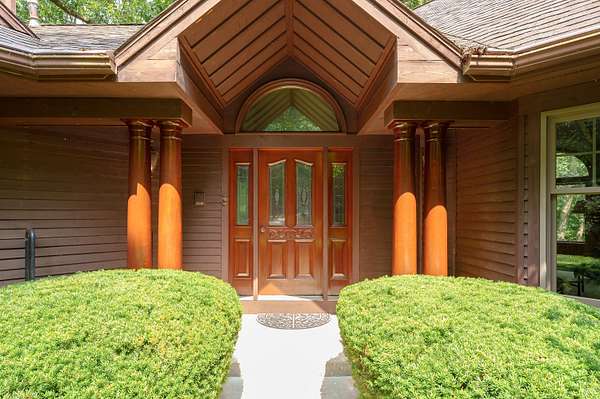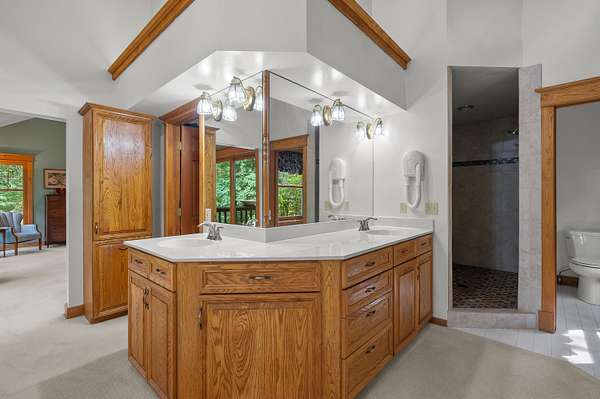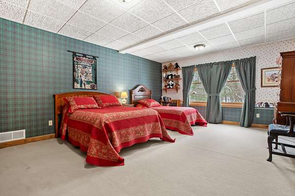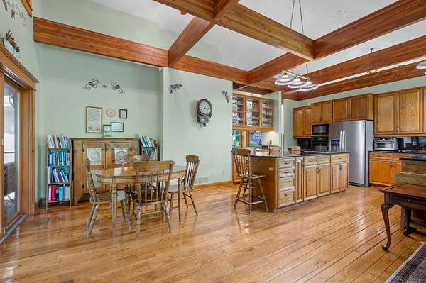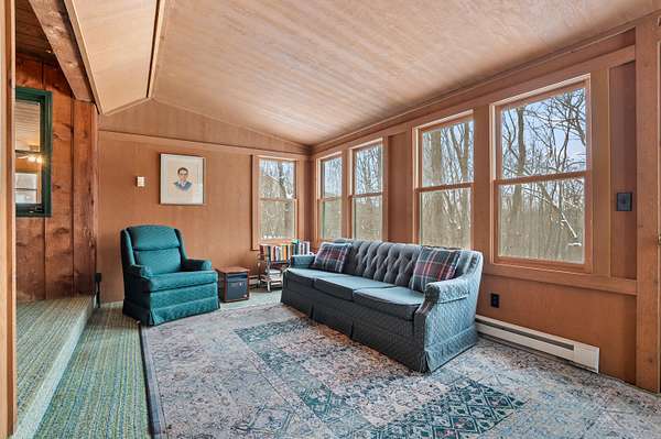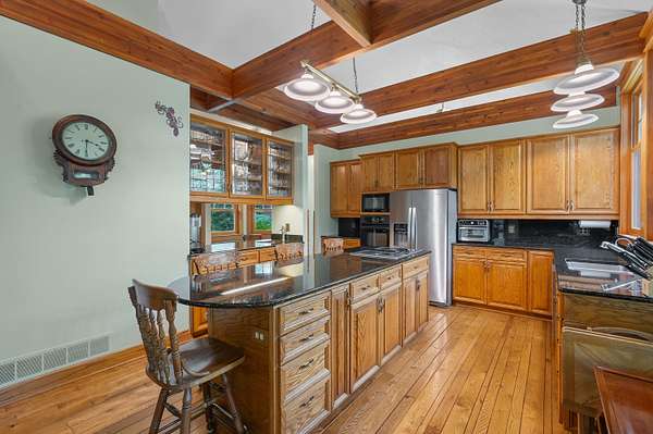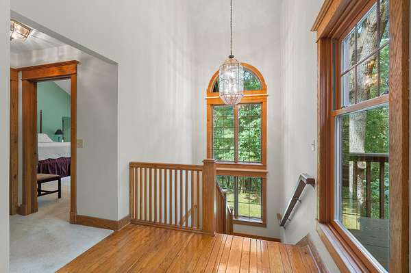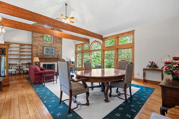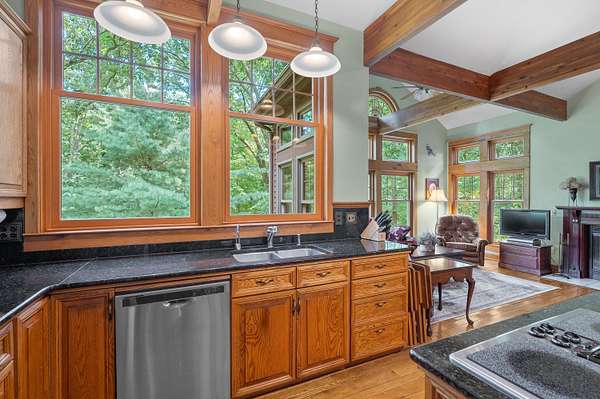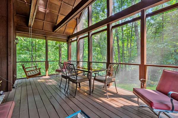 A rare opportunity awaits in an irreplaceable setting~ready to be discovered. This custom-built home + separate cabin are nestled on 42+acres, just 5 minutes from Gull Road. This well-loved, original owner home offers 4,400+ sq ft of finished living space with a multitude of windows on all levels, showcasing the surrounding natural beauty. A half-acre level playing field is a short trail walk from the home. Vaulted ceilings, exposed wooden beams, hardwood floors, and four fireplaces create a serene retreat. The main floor features a thoughtfully designed primary suite w/an intimate fireplace, a large jetted tub, and a private deck overlooking the creek.The spacious 2nd bedroom is adjacent to a full bath, just steps from the main foyer.The living area boasts a wall-to-ceiling fireplace, b bookshelves, gorgeous woodwork, and a dining area, offering a spectacular open space for entertaining. The vaulted ceilings and exposed wooden beams flow into the kitchen area, which features granite counters, a large island with stools, a second dining area, a wet bar, and a cozy family room with a fireplace. A spacious screened-in porch is just steps away. The lower level walkout offers a cozy rec room with another fireplace, 2 spacious bedrooms, another full bath, a workout room with a private entrance, and a workshop area. The separate cabin, just a short trail from the main home, offers 2 bedrooms, a full bath, a kitchen, and baseboard heat or a wood-burning stove. The possibilities are endless for a studio, mother-in-law suite, or guest house.