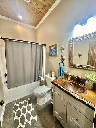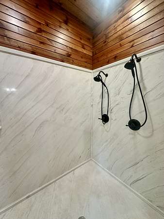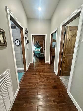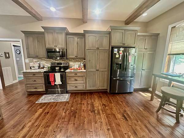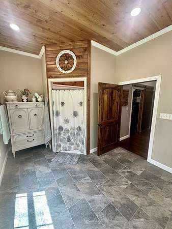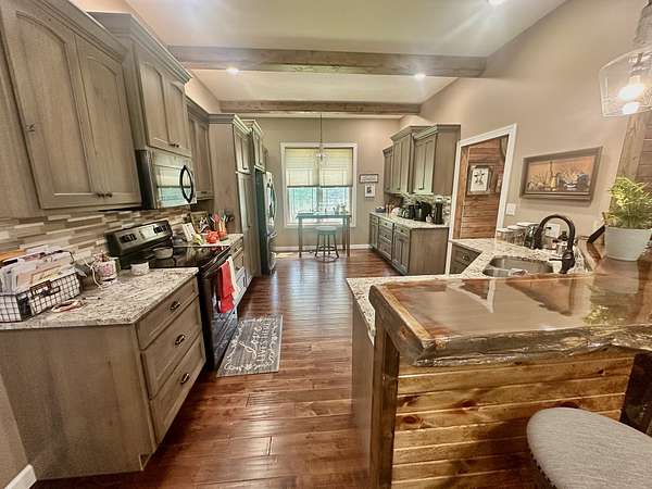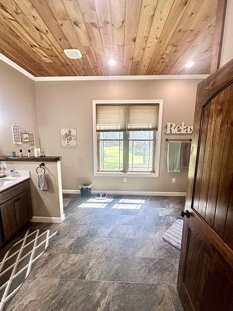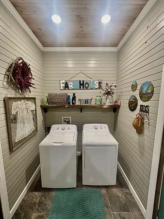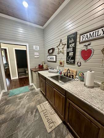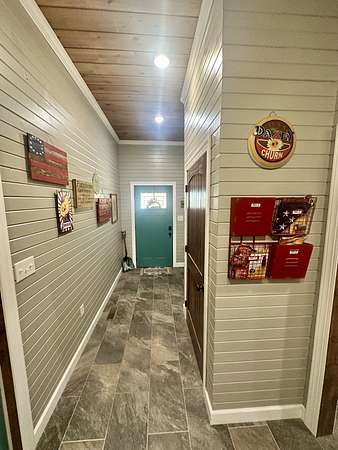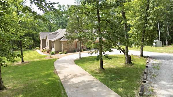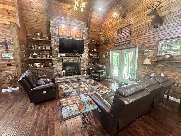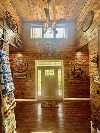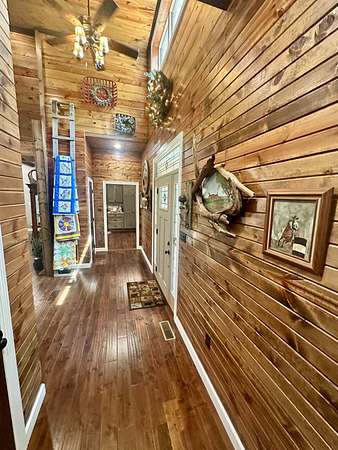 NEW PRICE POINT Stunning one of a kind home on 8.9 unrestricted acres and stocked pond! This home was built in 2019 by one of the areas premier builders. From the moment you walk in you take notice of the knotty pine wood with a chestnut finish along with 16 foot ceilings and custom floating shelves from local wood. The home has a custom kitchen with soft close drawers to a double pantry with granite countertops. The master bedroom is a very large room with multiple walk in closets with barn doors. The master bath has a double vanity along with a man made marble shower and ceramic tile flooring. Hardwood flooring and 10 foot ceilings in the bedrooms. 36" handicap accessible doors. The front and rear porches are stamped concrete overlooking the pond. Vinyl clad double hung windows from WinTech. The home features all amenities with city water, septic, natural gas and high speed internet. The land has good mixed timber! Not far from the Tennessee River.