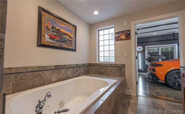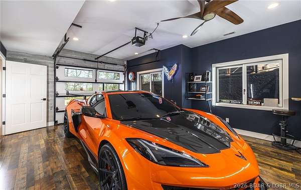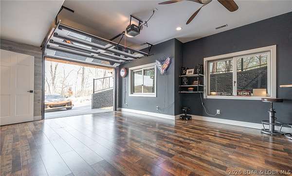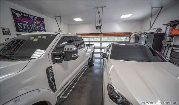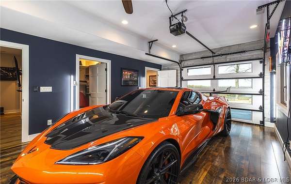 Tucked into a private setting in the heart of town, this stunning home offers year-round lake views and 3 acres with no HOA-perfect for relaxing, entertaining, or expanding. The spacious layout features 6 bedrooms, 4.5 bathrooms, two living areas, a safe room, and two laundry rooms. Enjoy two luxurious primary suites with spa-like baths and high-end showers. A standout feature is the versatile basement en suite, ideal for a guest suite, man cave, workshop, or creative space. Recent upgrades include new garage doors, fencing, ceiling fans, interior lighting, new granite on the kitchen island, a double oven and more. The finished, climate-controlled garage feels like an extension of the home, complete with modern finishes, dark accent walls, rich wood flooring, updated lighting, and built-in shelving-perfect for car enthusiasts or collectors. Level, usable acreage offers endless possibilities to add a pool, shop, or more. Luxury, privacy, and convenience come together in this rare property.