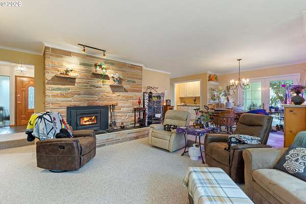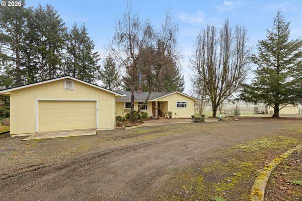 Escape to peaceful country living on 5.02 level, usable acres-just minutes from town! This inviting single-level, custom-style home offers 3 bedrooms, 2 bathrooms, and 1,657 sq ft of comfortable, easy living in a private, park-like setting. Outside is where this property truly shines: a fenced yard, multiple outbuildings, raised garden beds, and RV parking create the perfect setup for gardening, animals, hobbies, storage, or simply enjoying wide-open space. Relax or entertain with the best of both worlds-enjoy a covered deck plus an open-air Trex deck area for soaking up the sun and taking in the peaceful views of your acreage. Inside, you'll love the warmth and character of a wood-burning fireplace, durable slate and tile flooring, and year-round comfort with a heat pump. Additional features include vinyl windows, well and septic, an attached 2-car garage, and the ease of paved road access. If you've been looking for space, privacy, and versatility without sacrificing convenience, this is it. Appointment only - tenant occupied.