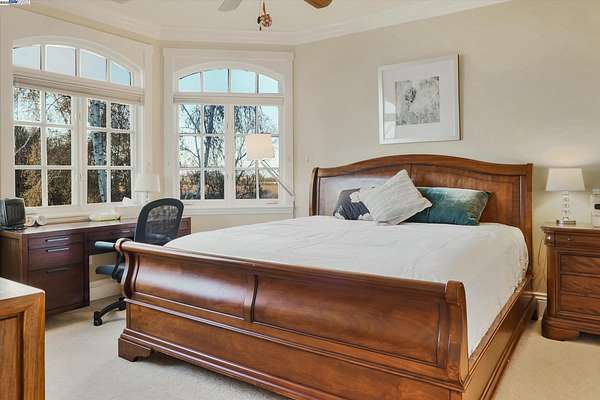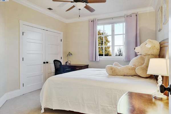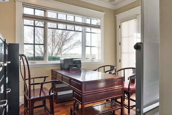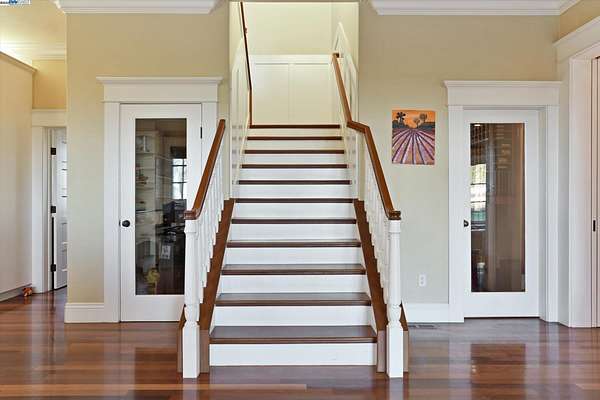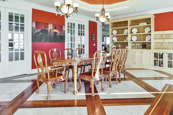 Breathing in the crisp air, basking in the sunlight, and relishing the tranquility of rural life ---What could be more extravagant than that? Nestled amidst the magnificent plains of the eastern foothills of Mount Diablo, this Contemporary style house is surrounded by vast fields embraced by vineyards. Situated on 40 acres of land, with 23 acres dedicated to various grape varieties, the property is a haven of natural beauty. Lush greenery envelops the house, with sprawling open grass. Playful rabbits dart about, the birds are singing sweetly, adding to the idyllic charm. Completed in 2005, the house boasts 7,058 square feet of living space, including 7 bedrooms, 5 and a half bathrooms, entertainment rooms, a gym, a wine cellar, and offices. The open-plan kitchen, adorned with exquisite architectural designs and decor, leaves a lasting impression on all who enter.