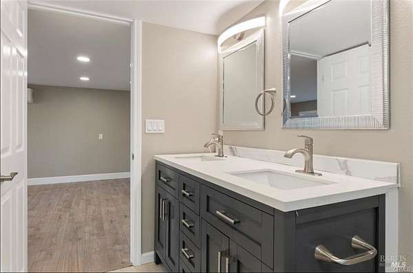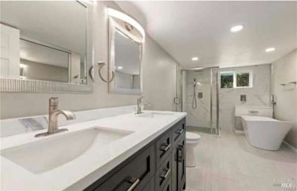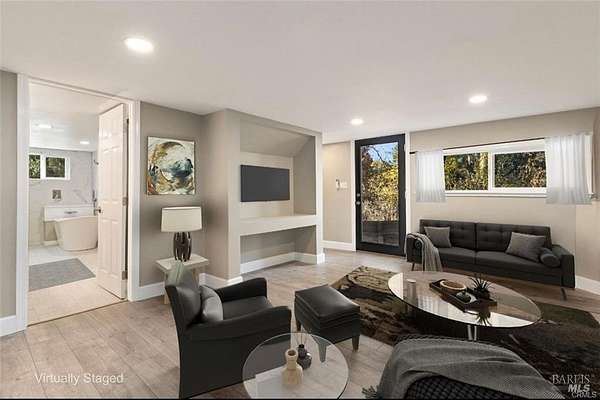 Discover the charm of this beautiful home, perfectly situated with Kelsey Creek in your backyard! The main level welcomes you with a cozy living room featuring a wood-burning fireplace, ideal for those chilly evenings. The gourmet kitchen is a culinary delight, boasting a stunning mosaic tile backsplash, sleek quartz countertops, and a spacious island, complemented by top-of-the-line KitchenAid appliances and ample cabinetry. Recessed lighting illuminates the space, enhancing the inviting dining area. This thoughtfully designed home offers two comfortable bedrooms and two well-appointed bathrooms, including a primary bedroom with its own private bathroom. As you venture downstairs, you'll find a generous family room equipped with a built-in entertainment center, perfect for movie nights or gatherings. Here, you'll also discover two additional bedrooms and a full bathroom. One of the bedrooms features a versatile office/den area, ideal for remote work or creative pursuits. The separate entrance from the downstairs living area offers added flexibility for guests or family. This home is an entertainer's dream, with plenty of parking space for all your visitors. The possibilities are truly endless in this versatile property, and with the added benefit of being solar-ready.