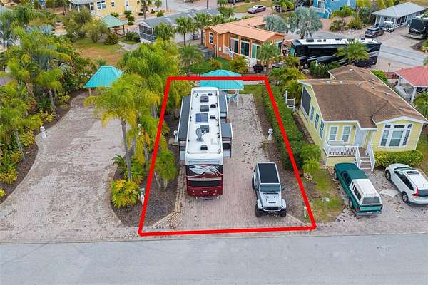 Don't miss this developer closeout opportunity to own a premier RV lot in one of Florida's most sought-after clothing-optional, gated communities! Located at 6742 Amanda Vista Circle in Land O' Lakes, this spacious 40'x80' lot offers the perfect blend of luxury, privacy, and resort-style living. Designed for relaxation and entertaining, the lot features brick pavers, a charming gazebo, and lush tropical landscaping with swaying palm trees, creating your own personal paradise. This lot has a 100 amp full hookup and Verizon fiber optic is available at the street. Positioned just steps from the clubhouse, two sparkling pools, a hot tub, and a lively tiki bar, you'll have every amenity at your fingertips. A dog park ensures even your furry friends feel at home in this welcoming community.