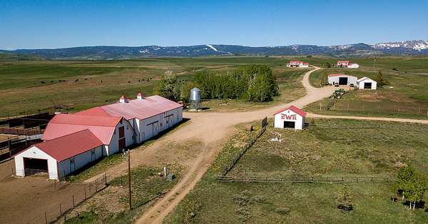 Eagle's Wing is outfitted with exceptional livestock infrastructure including a traditional western barn, indoor and outdoor working pens, office cabin, quality perimeter and cross-fencing, and dedicated pens for bulls, yearlings, and herds. The ranch also includes summer and winter grazing acreage and produces an average of 1,000 tons of high-quality North Park grass hay annually.