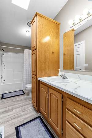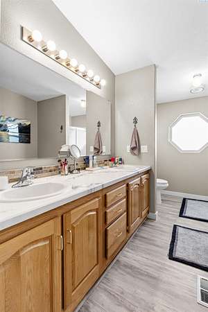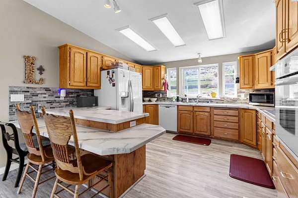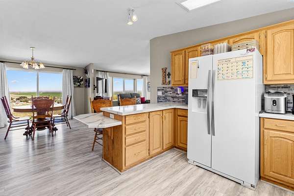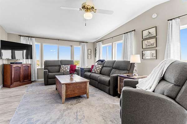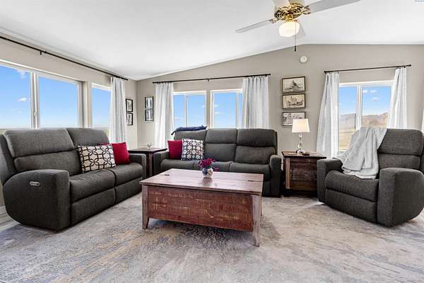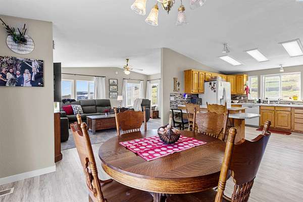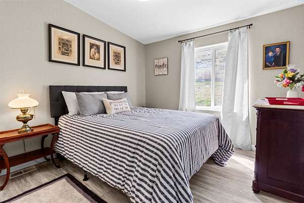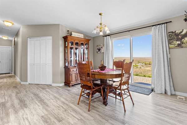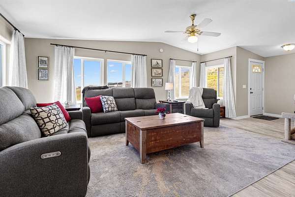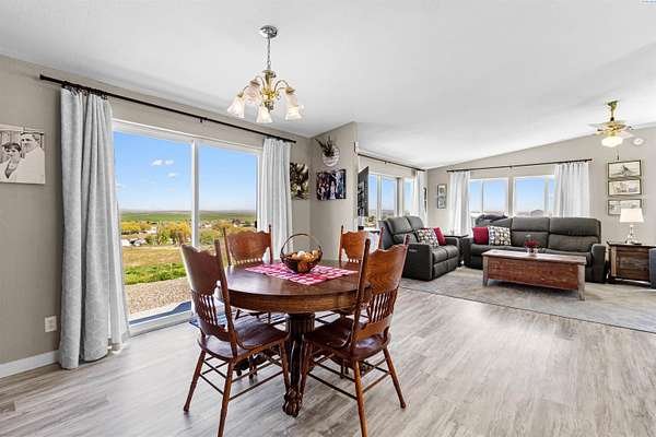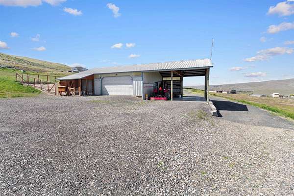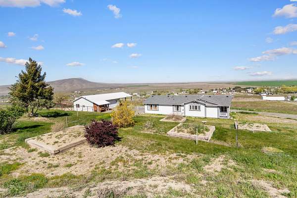 MLS# 292016 This 5-acre View property is situated on the north side of Red Mountain, between West Richland and Benton City. The 1,620 square foot, single-level home was built in 1995, and consists of 3 bedrooms, 2 bathrooms, a Great Room; Dining Nook with slider to a 'ginormous' patio; Spacious 'Country' Kitchen, and a laundry room with mud-room style bench, sink, and exterior door to your own private 1,200-vine vineyard (Malbec & Lemberger wine grapes), chicken coop, raised garden area, etc. This home has been significantly modernized, with a new 30+ year 'architectural-grade' composition roof in September, 2021; Complete interior overhaul with new Luxury Vinyl Plank flooring throughout, new 4" white trim, interior paint; gorgeous, and durable, 'epoxied' countertops; new sink & range-top, ALL in August of 2022; A brand new potable-water, variable speed well-pump, with state-of-the-art electronics, was installed in October of 2024; A brand new High-Efficiency electric Heat Pump and Furnace was installed in January of 2025. The 2-car garage door opener was replaced in March of 2025 and the full exterior of the home was painted in August of 2025. NOW, let's venture outside a bit more, and start with the full-length concrete patio that's absolutely going to be delightful, during the warm months. The immediate yard, including garden area, is served by timed underground sprinklers, and the vineyard is watered via a professional drip system. The predominantly finished 'shop' is 1,080 square feet in size, including a garage portion capable of fitting multiple vehicles, boats, toys, AS WELL AS a 'private,' insulated and finished, hobby room (man-cave / she-shed deluxe) with it's own climate-controlled, wall mounted HVAC system. This is IN-ADDITION-TO a large 3/4 bathroom with stand-up shower, sink, toilet, water heater, and pressure tank for the private well. The garage portion has a significant 'wrap-around' built-in work bench with white peg-board for ALL your tools. At the North end of the shop are two covered 'carport' bays. One is currently used for tractor shelter, and the other is a drive-through, perfect for your RV, side-by-side, boat, etc. The south end has a chicken coop, that keeps ALL the egg-layers in luxury comfort. Lastly, If the shop with the Overflow 'Guest Quarters' is sounding like the ideal 'multi-generational housing option, how about an adjacent 4.55 acres that's owned by the same Sellers, and being offered for sale too (MLS #29