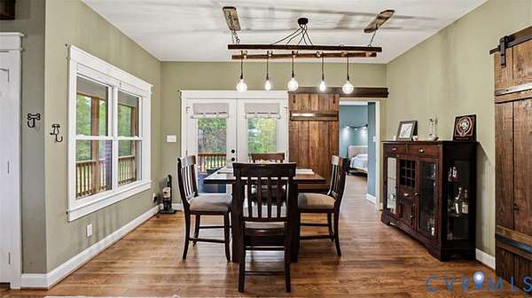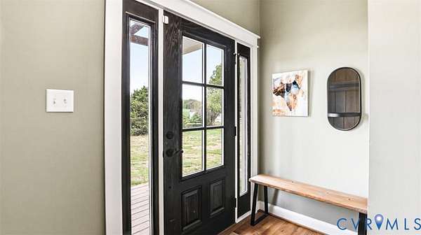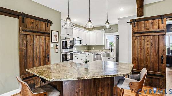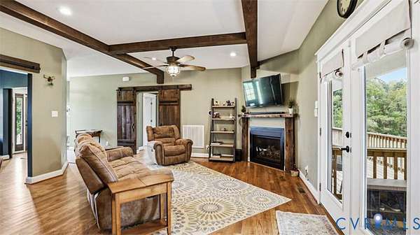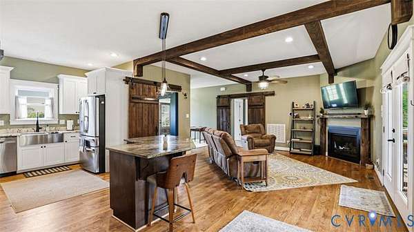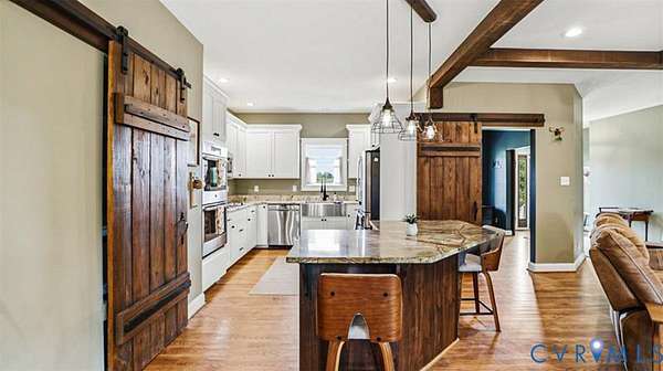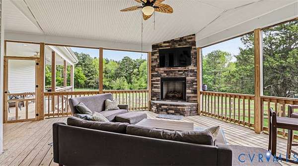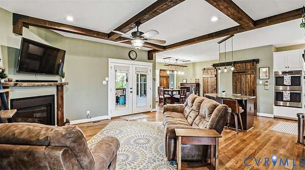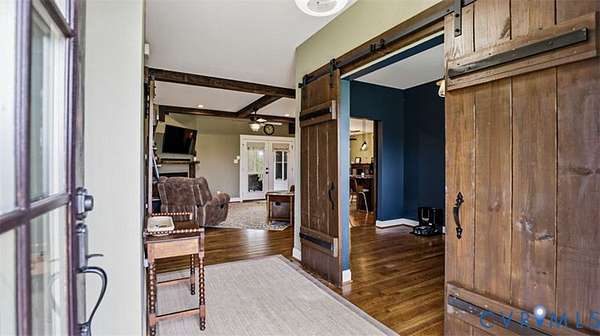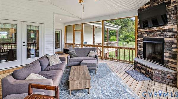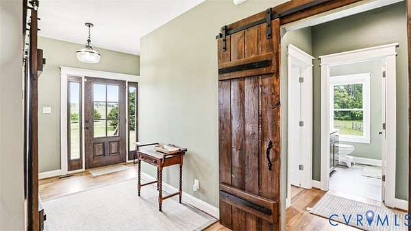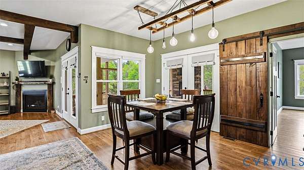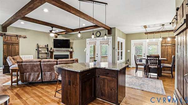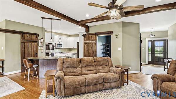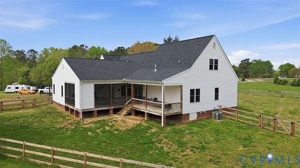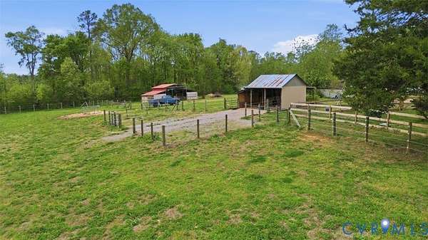 Custom-built Craftsman-style home on your own 5.92 mini farm in the heart of Amelia Court House offering thoughtful design, rustic character, and modern comfort. A private home office with sliding barn doors sits just off the entry. The open-concept kitchen features double wall ovens, gas cooktop, granite countertops, stainless steel appliances, and a marble island with barstool seating. The kitchen flows into the dining area and family room with a gas fireplace and beamed ceiling crafted from restored wood sourced from the property. French doors open to an expansive screened porch with a floor-to-ceiling stone fireplace and peaceful views of the surrounding acreage. The primary suite includes a walk-in closet and ensuite bath with clawfoot tub, walk-in shower, and private water closet. Two additional bedrooms share a hall bath with a walk-in shower. A laundry room and powder room complete the main level. The Huge unfinished second floor offers future expansion for 2 additional rooms and a full bathroom or ample storage. Other features include: 2 car attached garage with secondary washer/dryer, Generator Hook up, multiple water hydrants, The front pasture +/- 2 acres includes a run-in shed and the rear pasture +/- 1 acre includes newer White Lighting electric fencing and a 3-stall barn / run-in. Also included is a detached shed and 3 stall metal barn. The property offers the privacy of country living while remaining convenient to shopping and dining along the Hull Street / Magnolia Green corridor. You have to check this out. Love where you live!