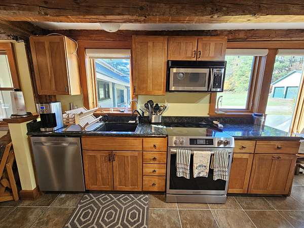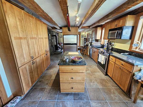 - Beamed Ceilings, Bookcases, Built-In Features, High Speed Internet, Kitchen Island, Stone Counters