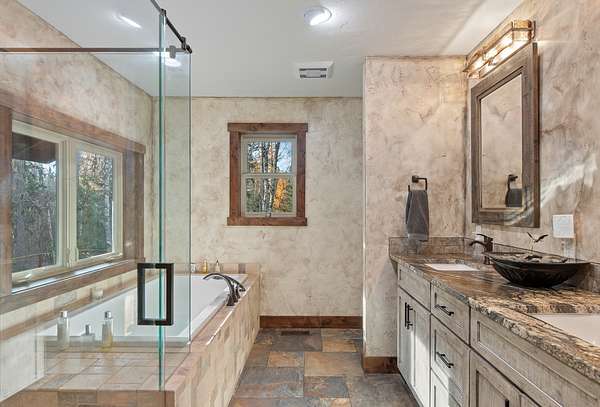 - Fireplace, Main Level Primary, Vaulted Ceilings, Walk In Closets
