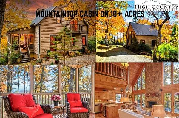 This beautiful 2BR 2BA mountain ridge-top cabin on 10+ acres, with the possibility to build a cottage, offers a serene escape defined by nature and tranquility. The setting is ideal for those seeking a haven to unwind, connect with nature, and soak in the beauty of the mountain environment and views. Features include a sunlit open floor plan with a soaring ceiling, a dramatic wood-burning stone fireplace, hickory floors, and pine paneling. The kitchen has GE Profile appliances and a high-top bar. The loft works as a game area, office, or additional sleeping space. The primary suite offers woodland views and its own balcony. A wonderful bonus is the large deck and screened-in porch to enjoy and entertain all year round! The walkout basement/2-car garage has a laundry hookup, is plumbed for 3rd toilet, and can be finished for added living space; it includes a 30-amp RV outlet. This Property has sunrise/sunset views, a flat driveway/yard, and room for a small pasture. Located in the pristine gated community of Leatherwood, amenities include hiking and horseback riding trails, a swimming pool, tennis, pickleball, and trout fishing nearby. Commercial venues outside the entrance include a restaurant, equestrian center, zipline, and campgrounds. Convenient to Boone, Blowing Rock, West Jefferson & Wilkesboro. The furnishings are negotiable, and the seller would consider selling the additional 10-acre contiguous parcel as well. A true gem awaits you. Come see today!