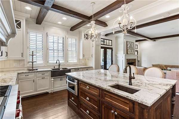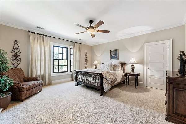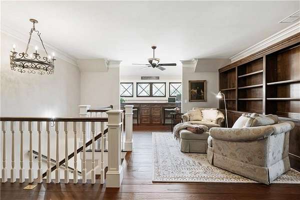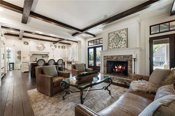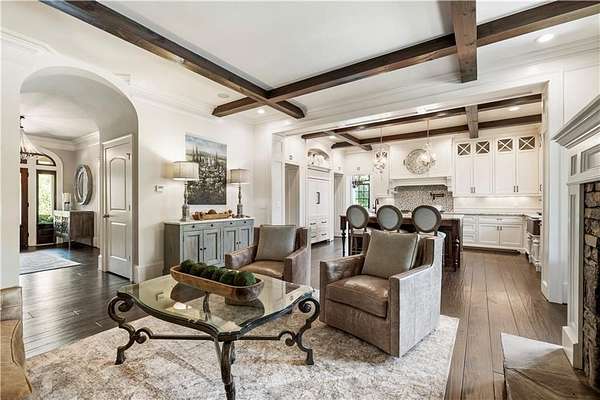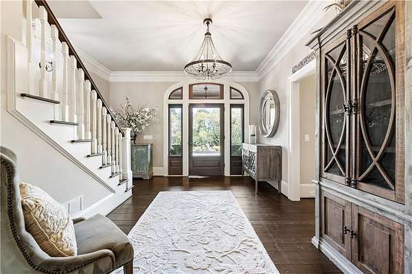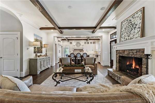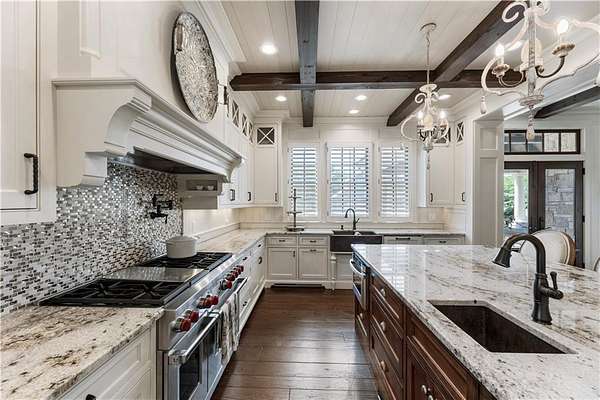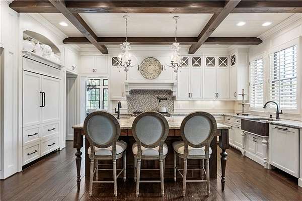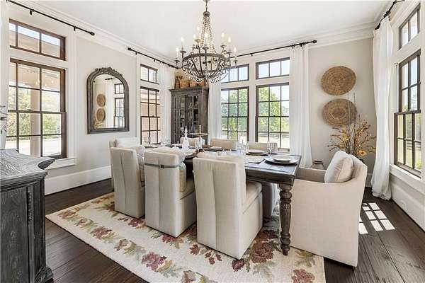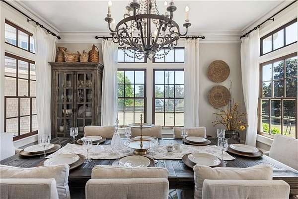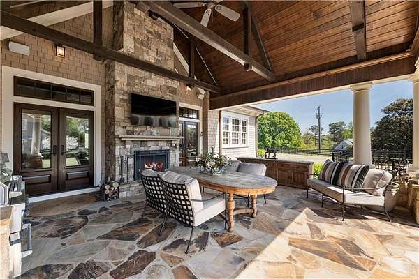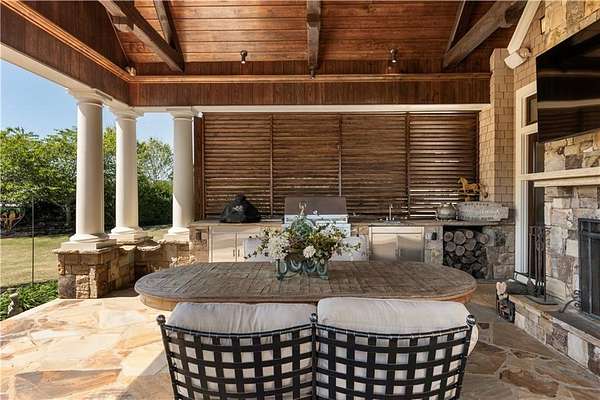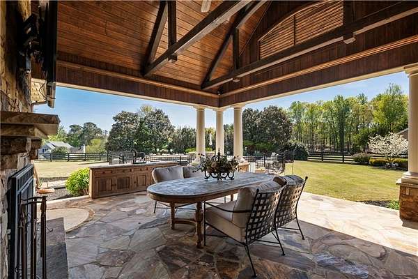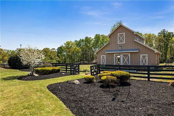 Discover a rare opportunity to own a private, gated estate in one of Cherokee County's most coveted areas-just minutes from the Milton border, top-rated schools, the Crabapple District, and vibrant downtown Alpharetta. Set on 2.78 manicured acres, this custom-built 2012 Southern retreat blends timeless rustic elegance with modern luxury, offering an unmatched lifestyle of privacy, comfort, and refined living. A long, tree-lined gated driveway leads to the welcoming covered front porch, complete with a classic porch swing that sets the tone for the warmth and character found throughout the home. Inside, the main level is designed for effortless everyday living, featuring a rare primary suite on the main and a beautifully curated floor plan filled with natural light. At the heart of the home, the gourmet kitchen impresses with stone countertops, a Wolf range, farmhouse sink overlooking the backyard, a spacious island with secondary prep sink, walk-in country pantry, a butler's pantry/coffee-breakfast-wine bar, and light-filled dining room. The fireside great room has full access to a vaulted covered patio with an outdoor fireplace and full outdoor kitchen-perfect for year-round entertaining and overlooking the PebbleTec pool and spa. Upstairs, a central loft with built-in desks and shelving provides an ideal office, homework, or creative workspace. Two generous en-suite bedrooms each offer private baths, ensuring comfort and privacy for family or guests. The terrace level expands the home's versatility with a second family room and fireplace, a guest bedroom with full bath, a separate half bath, and a flexible workout or gaming room. A spacious main-level laundry and mudroom connect via a covered stone walkway to the oversized three-car garage. Above the garage, a full in-law or guest suite offers a private living area, kitchenette, sleeping area, and full bath-perfect for extended stays. Outdoors, the property truly shines. The flat, usable acreage is fully fenced and thoughtfully landscaped, offering open green space, multiple garden areas-including a charming pumpkin patch-and a barn with power for hobby farming, storage, or future customization. The dedicated pool bath off the garage is an added convenience as well. High-quality craftsmanship, and a setting that feels worlds away yet close to everything, this estate delivers a polished, effortless take on luxury countryside living. A true Southern Charmer!