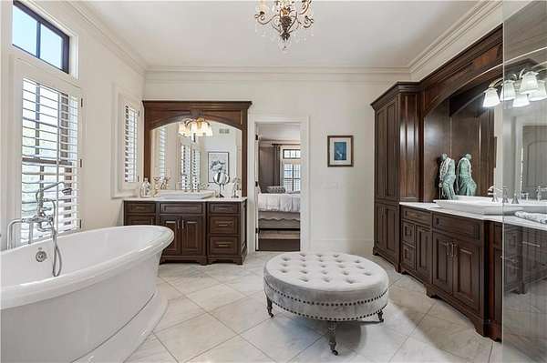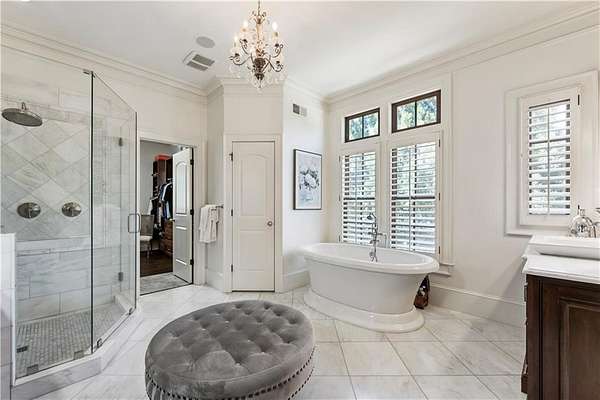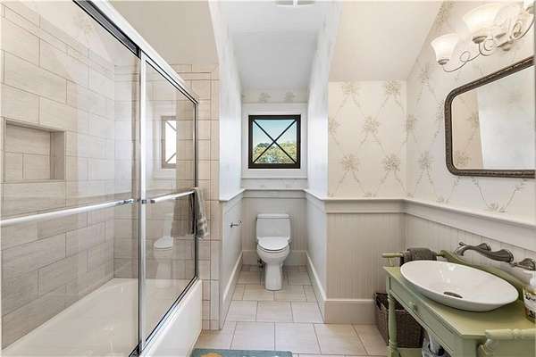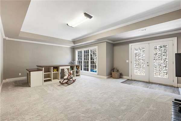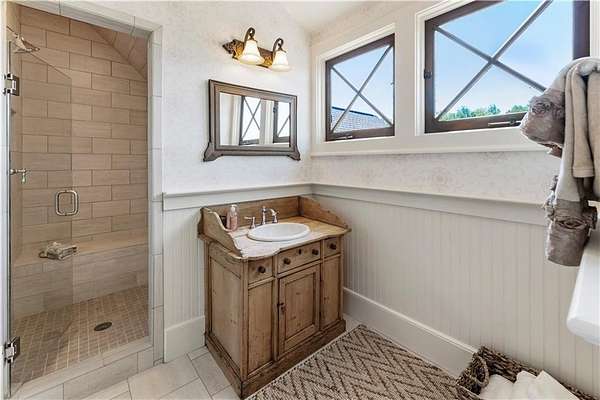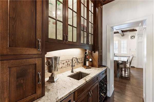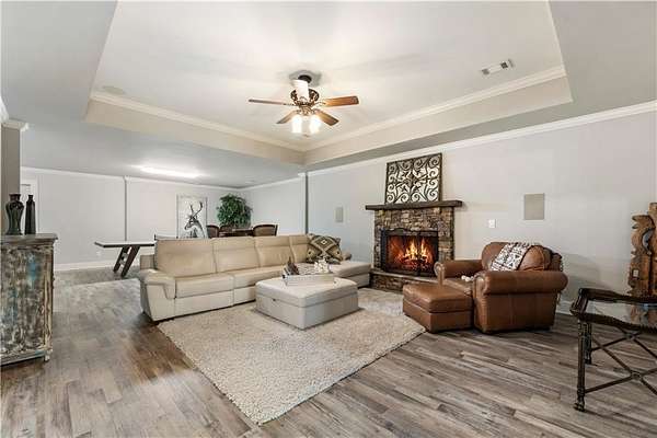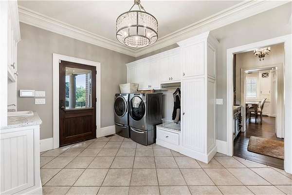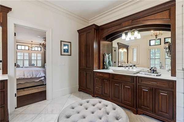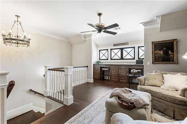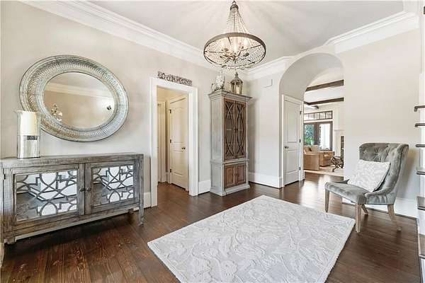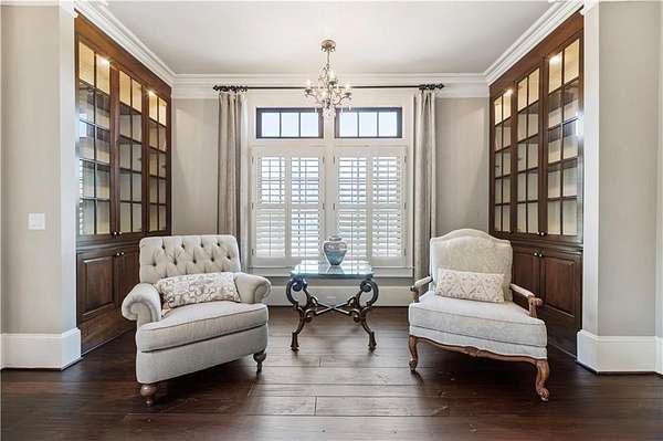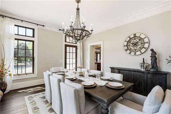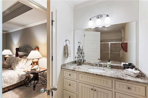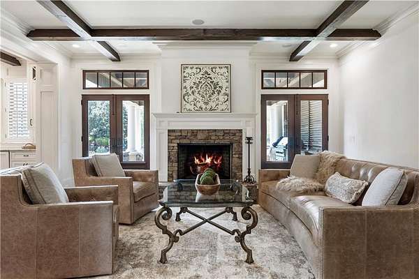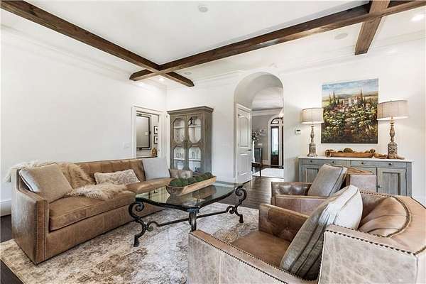 Discover a rare opportunity to own a private, gated estate in one of Cherokee County's most coveted areas-just minutes from the Milton border, top-rated schools, the Crabapple District, and vibrant downtown Alpharetta. Set on 2.78 manicured acres, this custom-built 2012 Southern retreat blends timeless rustic elegance with modern luxury, offering an unmatched lifestyle of privacy, comfort, and refined living. A long, tree-lined gated driveway leads to the welcoming covered front porch, complete with a classic porch swing that sets the tone for the warmth and character found throughout the home. Inside, the main level is designed for effortless everyday living, featuring a rare primary suite on the main and a beautifully curated floor plan filled with natural light. At the heart of the home, the gourmet kitchen impresses with stone countertops, a Wolf range, farmhouse sink overlooking the backyard, a spacious island with secondary prep sink, walk-in country pantry, a butler's pantry/coffee-breakfast-wine bar, and light-filled dining room. The fireside great room has full access to a vaulted covered patio with an outdoor fireplace and full outdoor kitchen-perfect for year-round entertaining and overlooking the PebbleTec pool and spa. Upstairs, a central loft with built-in desks and shelving provides an ideal office, homework, or creative workspace. Two generous en-suite bedrooms each offer private baths, ensuring comfort and privacy for family or guests. The terrace level expands the home's versatility with a second family room and fireplace, a guest bedroom with full bath, a separate half bath, and a flexible workout or gaming room. A spacious main-level laundry and mudroom connect via a covered stone walkway to the oversized three-car garage. Above the garage, a full in-law or guest suite offers a private living area, kitchenette, sleeping area, and full bath-perfect for extended stays. Outdoors, the property truly shines. The flat, usable acreage is fully fenced and thoughtfully landscaped, offering open green space, multiple garden areas-including a charming pumpkin patch-and a barn with power for hobby farming, storage, or future customization. The dedicated pool bath off the garage is an added convenience as well. High-quality craftsmanship, and a setting that feels worlds away yet close to everything, this estate delivers a polished, effortless take on luxury countryside living. A true Southern Charmer!