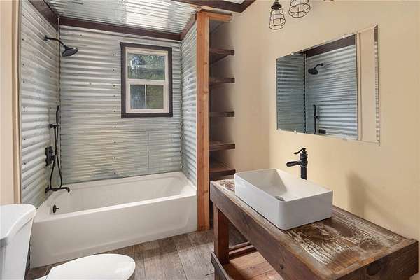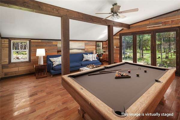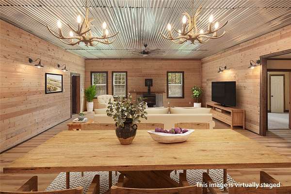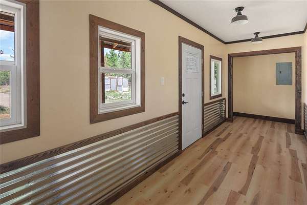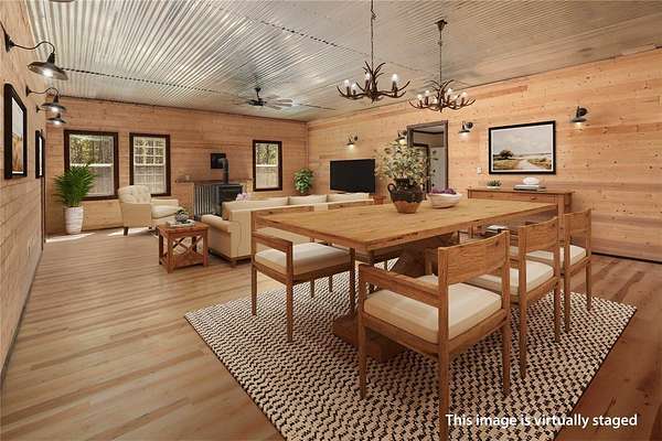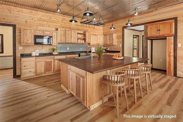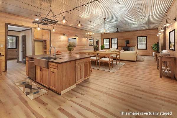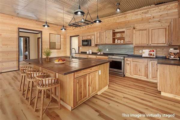 Experience modern country living in the heart of Northwest Montana! Just minutes away from Little Bitterroot Lake and Ashley Lake, this stunning barndominium-style home features 5 bedrooms and 2 bathrooms, offering over 3,000 square feet of beautifully designed living space that blends rustic charm with modern touches. The kitchen is equipped with hickory cabinets, edge-grain countertops, a large island with farmhouse sink, and corrugated metal accents. The open-concept living and dining area boasts soaring ceilings and a charming wood-burning stove as the focal point, complemented by stylish pendant lights and chandeliers that add an industrial farmhouse flair. The layout flows effortlessly, creating an ideal space for both entertaining and everyday living. The primary suite offers a spacious layout, complete with a walk-in closet and an en-suite bathroom that features a soaking tub and a walk-in shower. Adjacent to the primary suite is a den that provides extra flexibility, making it perfect for a home office, reading nook, or quiet flex space. Set on 5 acres of peaceful, wooded privacy, the property is ready for animals and includes a fenced garden, a barn with electricity, two chicken coops, hay storage, a goat area, and a horse paddock. Whether you're seeking a full-time residence or a weekend retreat near the lakes, this property offers the best of rural living with the conveniences of Kalispell nearby. Schedule your showing today! Seller is a licensed MT real estate broker.