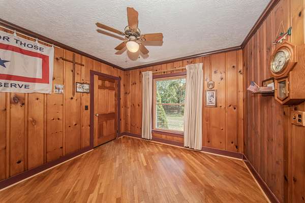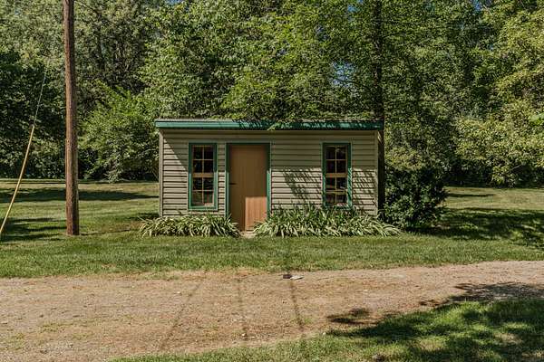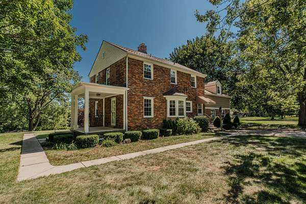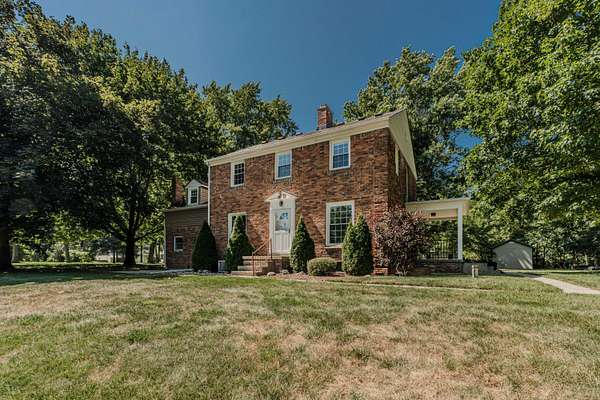 In the most beautiful park-like setting this agent has seen in 30+ years, you'll find this stately brick center-entry colonial with architectural features found in a bygone era. Upon entry, you'll find a spacious living room with coved ceilings and a doorway to the covered side porch. There's a cozy kitchen with a bay-window eating space, and a sunken family room. Upstairs you'll find 3 bedrooms, 2 full (updated) baths , and a bonus room above the family room, w/ample built-in storage. There are newer windows throughout. The dry basement has walk-up stairs, and offers a 2nd family room space. Outside, you'll find a 3-car detached garage, plus two spacious sheds. Wildlife visits nearly every day, making this home into an oasis of peace within a bustling world. Don't miss it!