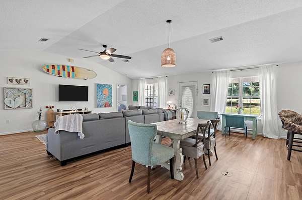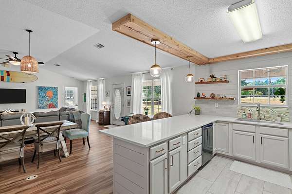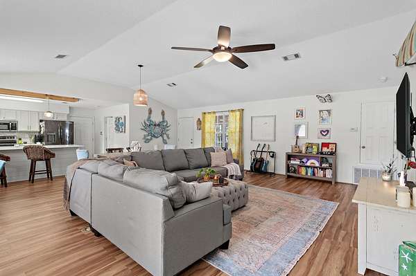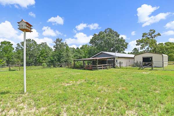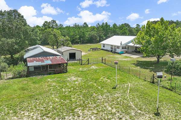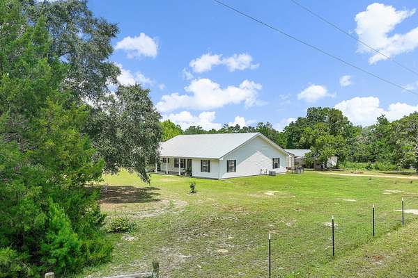 Beautifully Updated Home on 4.5 Acres! This peaceful 4.5-acre property offers the perfect blend of privacy, comfort, and functionality. The open-concept home features two spacious primary suites, an extra large front porch, and a newly renovated kitchen with quartz countertops, custom tile work, floating shelves, new appliances, and updated lighting. A separate suite with a kitchenette, gas range, commercial vent hood, and built-in grill provides flexible living or guest space. Outdoors, enjoy: Outdoors, enjoy: - 2+ acres of mature trees with a walking trail - 2+ acres of fully fenced pasture divided into 3 sections ideal for livestock or gardening - Stables and chicken coop - 24x60 barn/workshop with power - 18x25 insulated storage building with power - Full RV hookups and separate septic system - Private well + public water access (meter in place, tap fee required) Attached covered parking and wide-open skies complete the picture. Just 25 miles from the white sand beaches of Destin, 20 miles to Niceville, 15 miles to Crestview, and 10 miles to downtown Defuniak Springs. "Finca del Sol", Ranch of the Sun, is a rare opportunity to own a move-in ready homestead with room to grow.