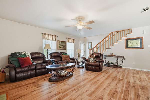 If you've been searching for the kind of property that takes years to build, where the landscaping is already established, the infrastructure is already in place, and the lifestyle is already waiting, then 675 Spring Lake Rd is ready to deliver. Set on two lush acres in DeFuniak Springs' private Spring Lake Estates, this one-of-a-kind property offers access to a private 155-acre spring-fed lake, a studio apartment above the garage, and a curated outdoor living experience that simply can't be replicated overnight. Inside the 2,424-square-foot main home, an open floor plan creates easy flow through the main living areas. The kitchen is well-equipped with generous cabinetry, a pantry, and stainless appliances. Perfect for a quiet morning or a full dinner spread. Three bedrooms and three full bathrooms offer comfort and flexibility throughout, with a refreshed upstairs bath and a nicely appointed primary bath on the main level. Upstairs, a versatile loft adds another dimension to the floor plan and it could easily be enclosed and converted into a fourth bedroom to suit growing needs. The detached two-car garage comes with a bonus that sets this property apart: a fully functional studio apartment above it. Whether you envision it as a guest suite, a home office, long-term rental income, and art studio, or accommodations for extended family, this space functions as an effective fourth bedroom and fourth bath, adding layers of value that most comparable listings simply don't offer. Step outside and the property truly comes alive. Two acres of mature, established landscaping surround the home, with azaleas blooming abundantly throughout. It is a genuine sanctuary for anyone who craves serenity and to be surrounded by nature and the outdoors. Expansive front and back porches frame the home beautifully and invite long, unhurried evenings or quiet coffee time in the mornings. The on-site amenities speak for themselves: a dedicated picnic and grill area, a crackling fire pit, a charming greenhouse, and a carport with a pad already poured. This is the kind of infrastructure that typically takes years and significant investment to create but here, it's already done. As part of Spring Lake Estates, residents enjoy access to a private 155-acre spring-fed lake with a gazebo, dock, and boat launch at the gated community common area. A covered pavilion with picnic tables and restrooms rounds out the amenities that are accessible by key for homeowners. Low HOA keeps these resort-style amenities well within reach. Whether you're drawn to the water, the wildlife, the studio income potential, or simply the rare chance to step into an already-established outdoor lifestyle, this is the kind of property that rewards the buyer who recognizes it. Schedule your private showing today because this combination of a well-built home, acreage, mature landscaping, lake access, and on-site character doesn't come available often.