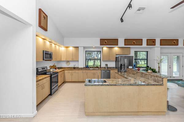 - Built-In Features, Ceiling Fan(s), Eat-In Kitchen, Open Floorplan, Split Bedrooms, Vaulted Ceiling(s), Walk-In Closet(s)