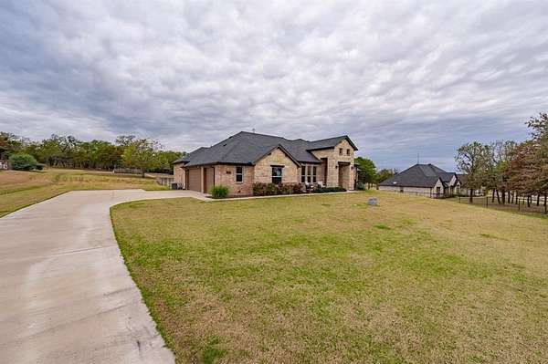 Welcome to 6751 Weiland Rd -- a beautifully maintained 4-bed, 2.5-bath ranch-style home on 2 acres outside city limits in Weatherford. Built in 2018, this property offers a rare combination of space, functionality & privacy with no HOA restrictions. Hand-scraped hardwood floors flow throughout the main living areas, anchored by a striking stone wood-burning fireplace. The open-concept kitchen is designed for everyday living & entertaining, featuring granite countertops, ample cabinetry, & generous prep space.