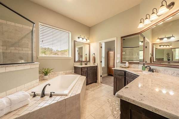 Enjoy a thoughtfully designed split floorplan with the primary suite on one side for enhanced privacy. The spacious en-suite features a large walk-in shower with dual shower heads. Dual vanities & large walk-in closet. Three secondary bedrooms--one ideally positioned for a home office--share a full bath. Near the 3 car garage is a separate laundry room & nearby half bath add extra convenience. A second living area provides additional space for relaxation, hobbies, or media.