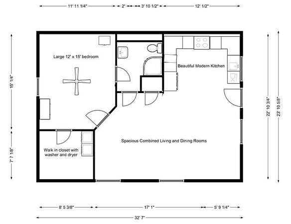 Above the garage, the 724 sq ft one-bedroom apartment offers flexible use as guest quarters, office space, or potential income-producing living space.