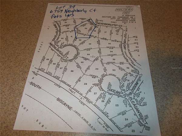 Est $107/moVacant land in sought after Gated Community of Holiday Park, and in the Pet Section. In Holiday Park you own the land with a deed and the maintenance fee of $195.00 monthly ($2340.00 a year) is included in your taxes. This lot measuring 4918sq ft. is in a cul-de-sac. The driveway has been left. Holiday Park offers many amenities including 2 Pools, Tennis Courts, Pickle Ball, Bocci, Shuffleboard, Laundry, Library, Tennis, Horseshoes, Bingo plus other card games, Fitness Room and so much more. This is a perfect place for your new manufactured home. Come and see