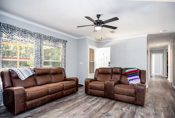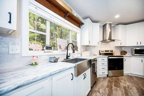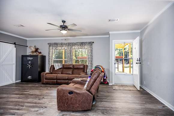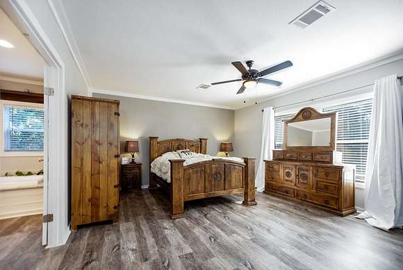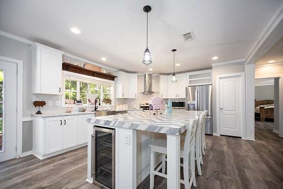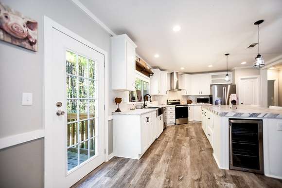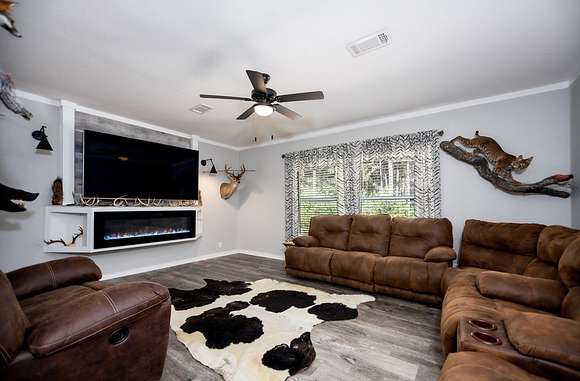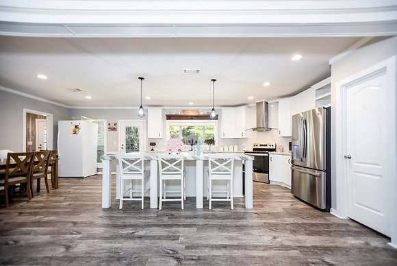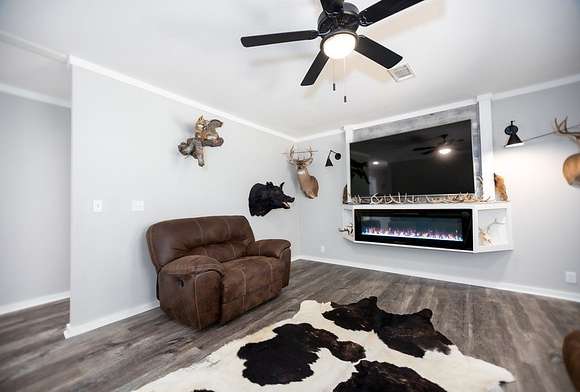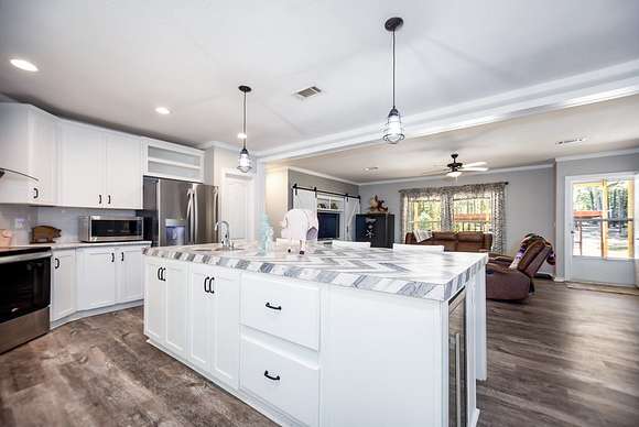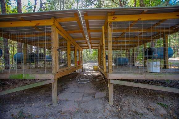 MOTIVATED SELLER, BRING OFFER!! Enjoy the tranquility of the surroundings, with this beautiful 4 bedroom 2 bath home nestled far enough from the quiet county road, providing privacy and seclusion. Discover your dream home, surrounded by nature & privacy on 21.52 acres of nearly mature pine trees & a picturesque stocked pond. This residence is perfect for families, with the master bedroom showcasing a walk-in closet & a lavish master bathroom with a garden tub, his & her sinks, a makeup vanity, and his & hers walk in closets with a safe room. The kitchen is designed for entertaining, with an expansive island, garden sink, & plentiful cabinet space. This home has a large walk in pantry & features a second entertainment room with an electric fireplace with mantle. Additional amenities include 8 dog kennels, 15x5 back porch, a newly constructed 20 x 20 porch, and a spacious 20 x 24 carport. There is a cleared area for a 40 x 60 shop to be constructed directly across from the house.