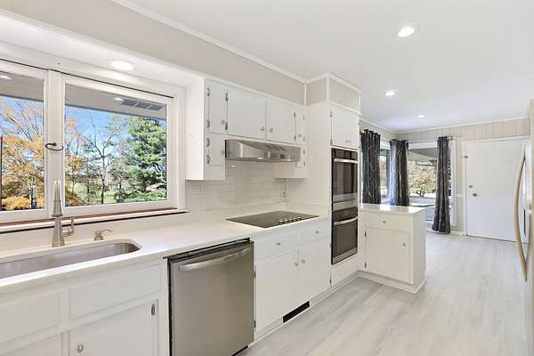 Recent renovations elevate the home's appeal, including new flooring, updated kitchen with sleek quartz countertops, stainless steel appliances, and a brand-new roof.