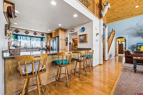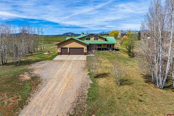 Justin D Osborn, The Wells Group of Durango, LLC, O: 970-946-3935, justin@wellsgroupdurango.com, http://southwestcoloradoranchbrokers.com/: First time on the market! Original owner home set on 3 irrigated acres. Bright, open floor plan with vaulted ceilings and a striking floor-to-ceiling stone fireplace. Thoughtful split layout with the primary suite on one side and two guest bedrooms on the other for added privacy. Enjoy the outdoors with mature cherry, plum, and peach trees, plus a recently re-stained deck which is perfect for taking in the views or relaxing at the end of the day. Three-car garage and extra-wide driveway provide plenty of space for vehicles, trailers, or equipment. South-facing driveway allows for easier winter snowmelt. Low-maintenance stucco and metal siding. A scenic 0.85 mile walk to Pastorius Reservoir offers easy access to fishing, paddle-boarding, and outdoor recreation. Priced below recent appraisal. The large unfinished walk-out basement includes sliding doors and is already plumbed for a bathroom, offering excellent potential to expand living space and create instant equity.Be sure to check on the virtual tours for a 3D walkthrough and a map of the area.