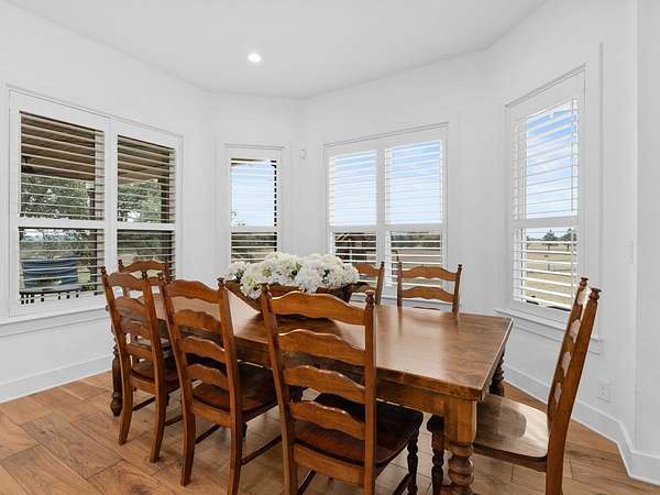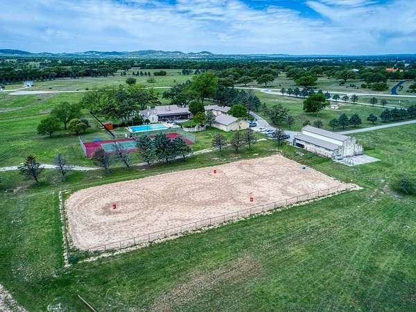 Set just in the Heart of Bandera, The Cowboy Capital Of The World, this Refined 8.76 Acre Exceptional Showcase Home boasts Hill Country Vistas plus a 1152 Sq Ft Horse Barn and 780 Sq Ft Loafing Shed. Open Luxurious Light-Filled Living Spaces Flow Effortlessly to the Outdoors. From the entry with marble set in herringbone flooring, plantation shutters throughout, French Lacornue gas stove highlighting the gourmet kitchen, study with massive built-ins, new roof, porch- tongue and groove posts, this masterpiece is loaded with custom features. Kinetico water softener and water catchment system at barn, piped fenced perimeter along with snake fencing, outdoor pizza oven. Even a utility/mud room with built in dog kennels! Neighborhood amenities include Medina River Park, parks/playgrounds, pools, tennis and club houses. Photos are included above. Quiet, private, and deeply connected to nature, this Bandera property offers a rare balance-- where the home is a beautiful retreat along with the land and the views.