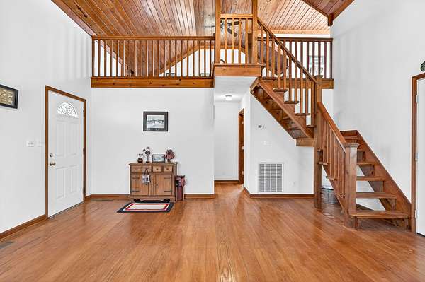 Cozy home located near Center Hill Lake offering almost 4 unrestricted acres, a small spring-fed pond, & the perfect atmosphere that feels like a constant retreat. The owners built this as a fishing getaway & a family gathering spot. Walking in you immediately feel at home w/ the hardwood floors & wood accented vaulted ceiling. The main level has an open living & kitchen area as well as your primary bedroom + bathroom. The loft area offers additional space w/ 3 beds & a balcony overlooking the backyard. Off the living room, you'll find spacious decking w/ a screened-in porch that has different sections to enjoy. There's enough room for a garage or shop, additional living square footage, or even fencing part of it in for animals. You are right down the road from Cookeville boat dock & not far from Baxter, Cookeville, or I 40. This home has been well taken care of & is move-in ready, w/ all belongings, such as furnishings & appliances, will remain. There is also a walk-in crawlspace perfect for storage. The roof & decking are also only about a year old. 13 month home warranty for peace of mind.